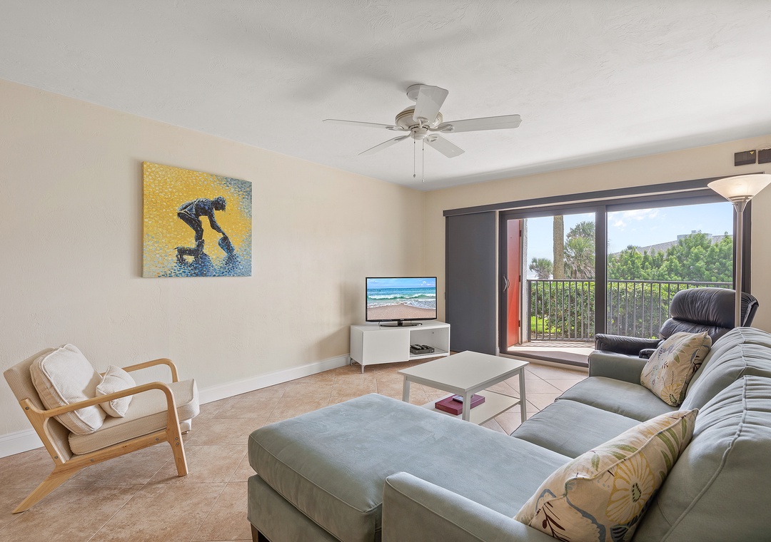 Experience coastal living at its finest in this beautifully furnished 3-bedroom, 2-bathroom oceanview condo located in the highly sought-after Las Brisas community in New Smyrna Beach. Available for monthly rental, this fully renovated residence features a rare private deeded garage, perfect for storing your vehicle, bikes, boards, and beach gear. Nestled in a golf cart-friendly neighborhood, you'll be just steps from two convenient beach walkovers and walking distance to several popular restaurants. The Publix shopping plaza is only half a mile away, and vibrant Flagler Avenue—with its dining, shopping, and live entertainment—is less than 2 miles from your door.