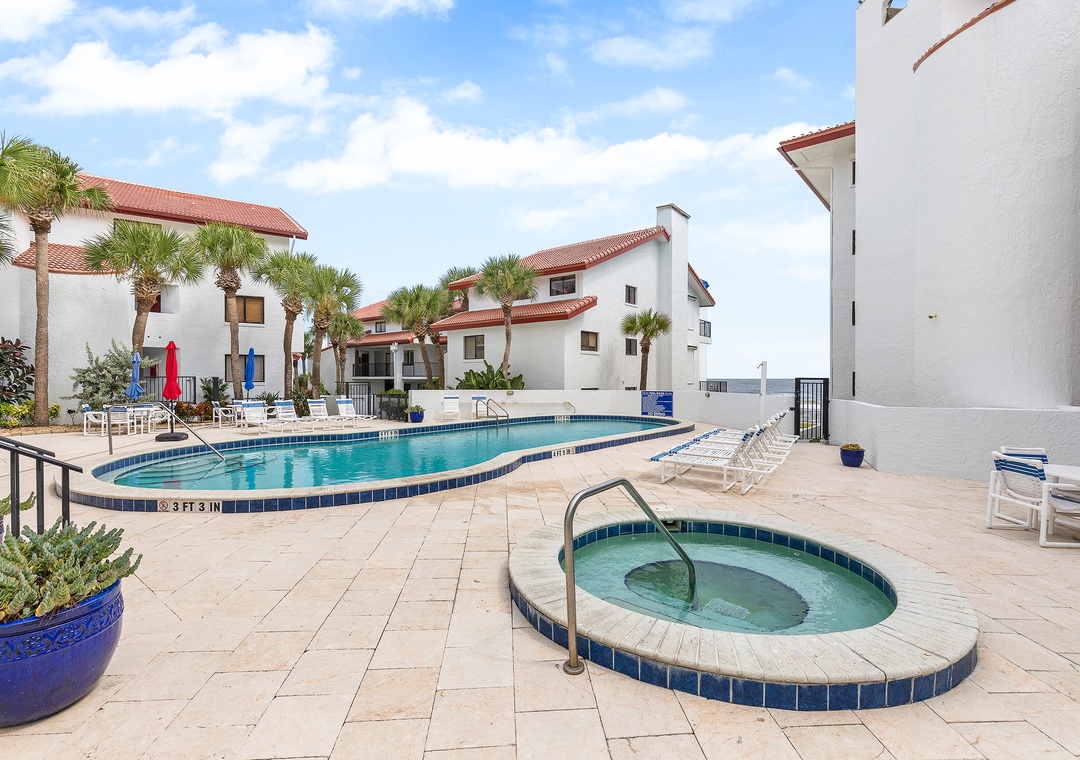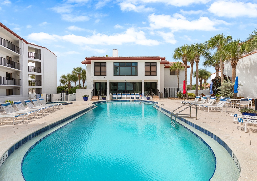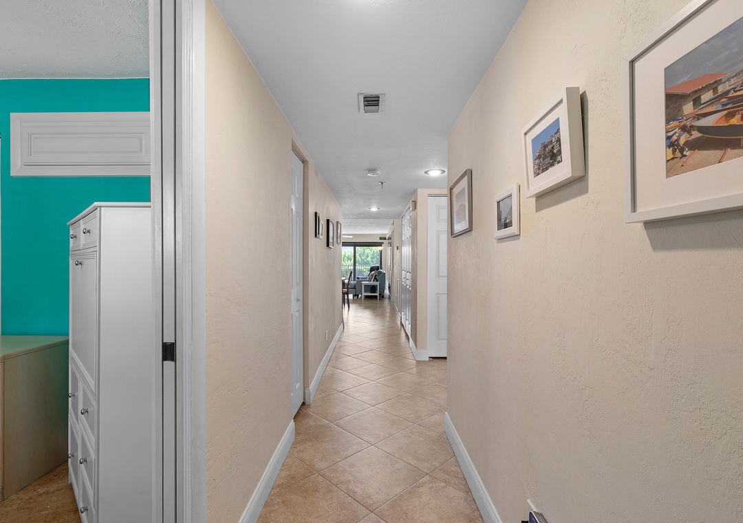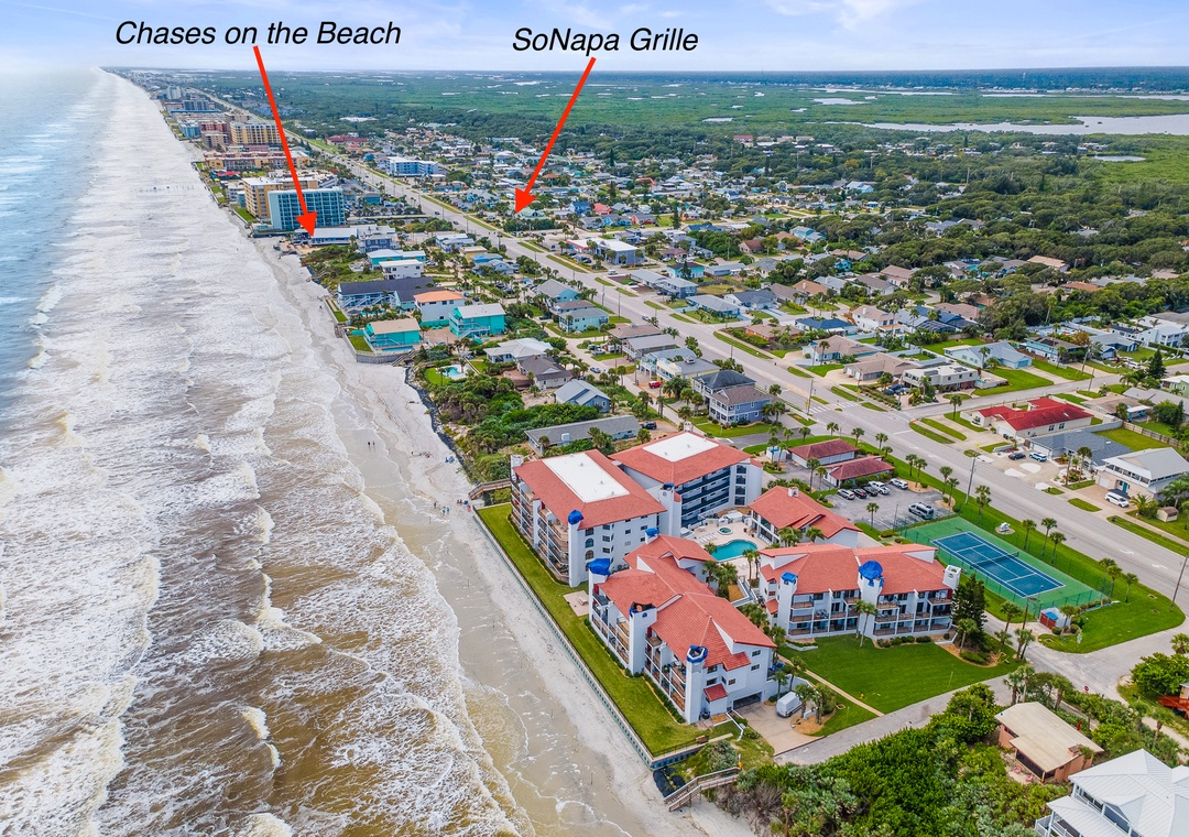 Nestled in a golf cart-friendly community and just steps away from several restaurants, this condo is ideally located only half a mile from the Publix shopping plaza and less than 2 miles from the famous Flagler Avenue, where you'll find an abundance of shopping, dining, and live entertainment options. With two beach walkovers flanking the complex, morning strolls, swimming, surfing, and making coastal memories with friends and family are just moments away. The Las Brisas complex boasts a charming Spanish theme with white stucco and red clay tile roofs, creating an intimate midrise development boasting 200 feet of ocean frontage and lush gardens. Residents of Las Brisas enjoy access to top-notch amenities, including tennis courts, a clubhouse with sauna, a heated swimming pool and a spa.