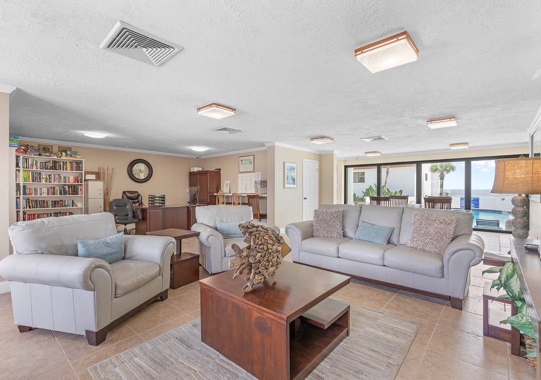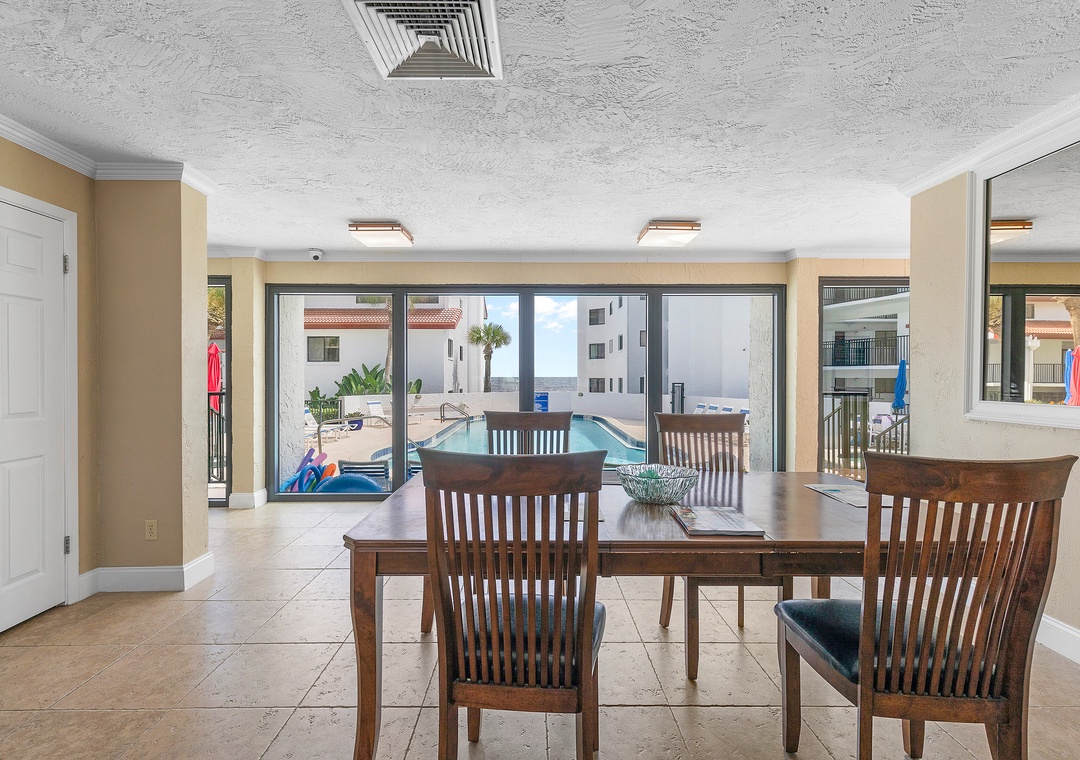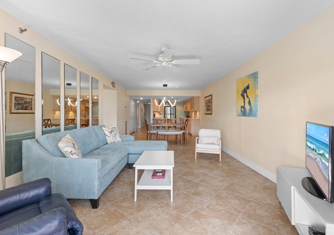 Additional features include hurricane-impact sliders with roll-down shutters, a storm door, tile flooring throughout the main living spaces, new Berber carpet in the bedrooms, LG front-load washer and dryer, Nest smart thermostat, and updated light fixtures and hardware throughout. Whether you're looking for a winter retreat, a work-from-beach setup, or a relaxing coastal escape, this condo offers everything you need—comfort, convenience, and breathtaking ocean views.