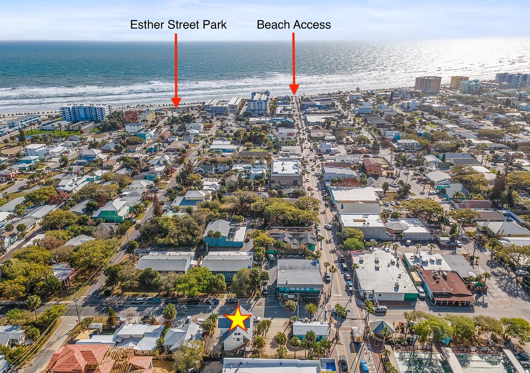 The location is truly unmatched. You're steps from restaurants, boutiques, ice cream shops, smoothie bars, and nightlife, with the beach just a short stroll away and the historic Canal Street Historic District just across the drawbridge. With no stairs, two assigned parking spaces directly out front, and walk-everywhere convenience, Lofty Suites is ideal for couples, small families, or girlfriend getaways. For larger groups, the upstairs unit Lofty Dreams and additional sister properties nearby make this corner of Flagler Avenue the perfect hub for multi-family beach trips and group getaways.