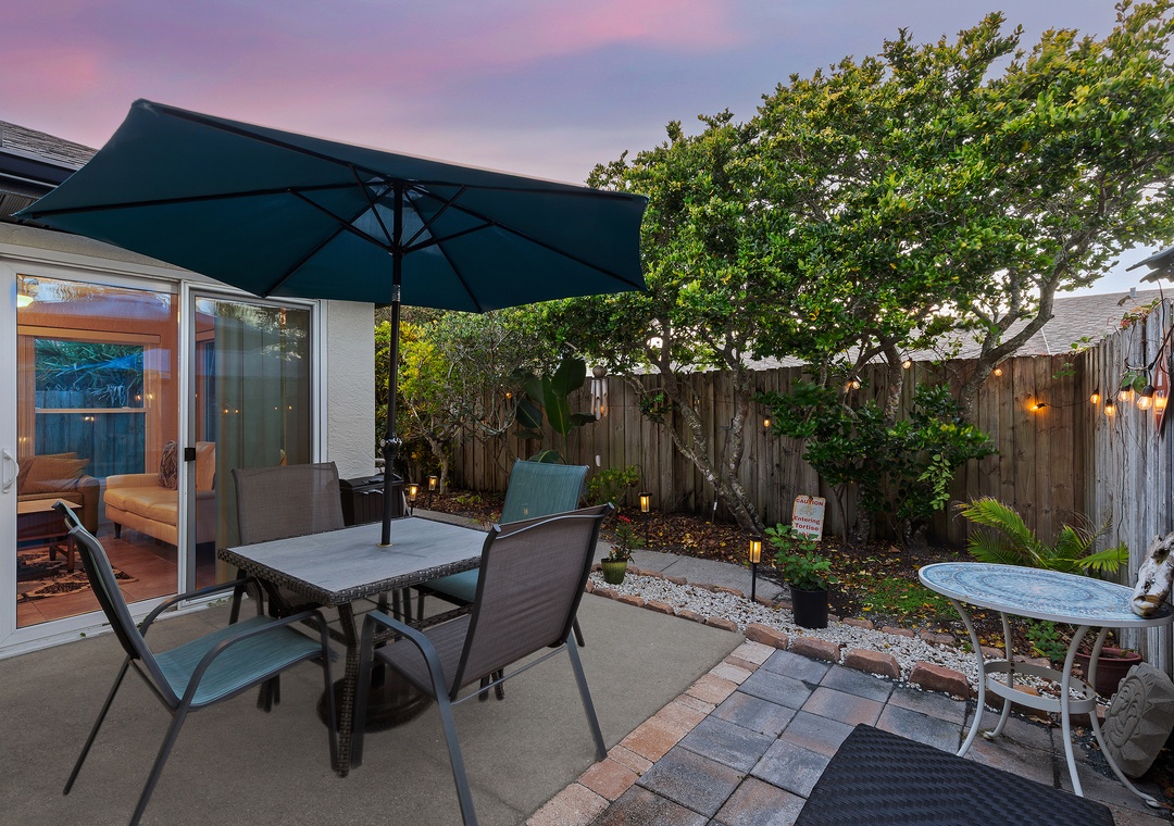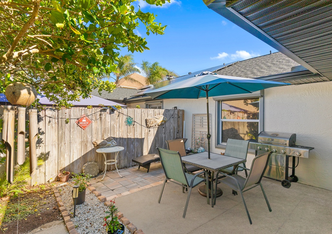 Step outside to enjoy the private fenced patio, complete with string lights, a grill, and plenty of seating—perfect for evening barbecues or morning coffee in the private oasis. Free Wi-Fi is provided, and up to two dogs (50 pounds or less each) are welcome. With its unbeatable location directly across from the non-drive beach and easy public access at 29th Avenue, this comfortable and pet-friendly duplex offers the perfect blend of coastal charm, convenience, and relaxation.