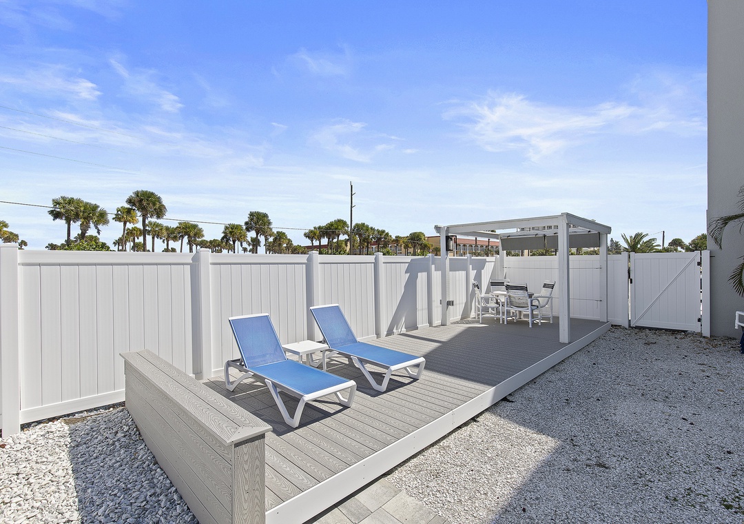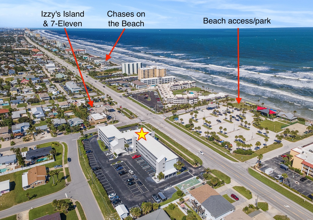 A crosswalk right at the corner provides easy access to a beach ramp. On one side lies the driveable beach, on the other the non-driving beach. Everything from casual eateries and a 7-Eleven to ice cream shops and grocery options are within walking or biking distance.
