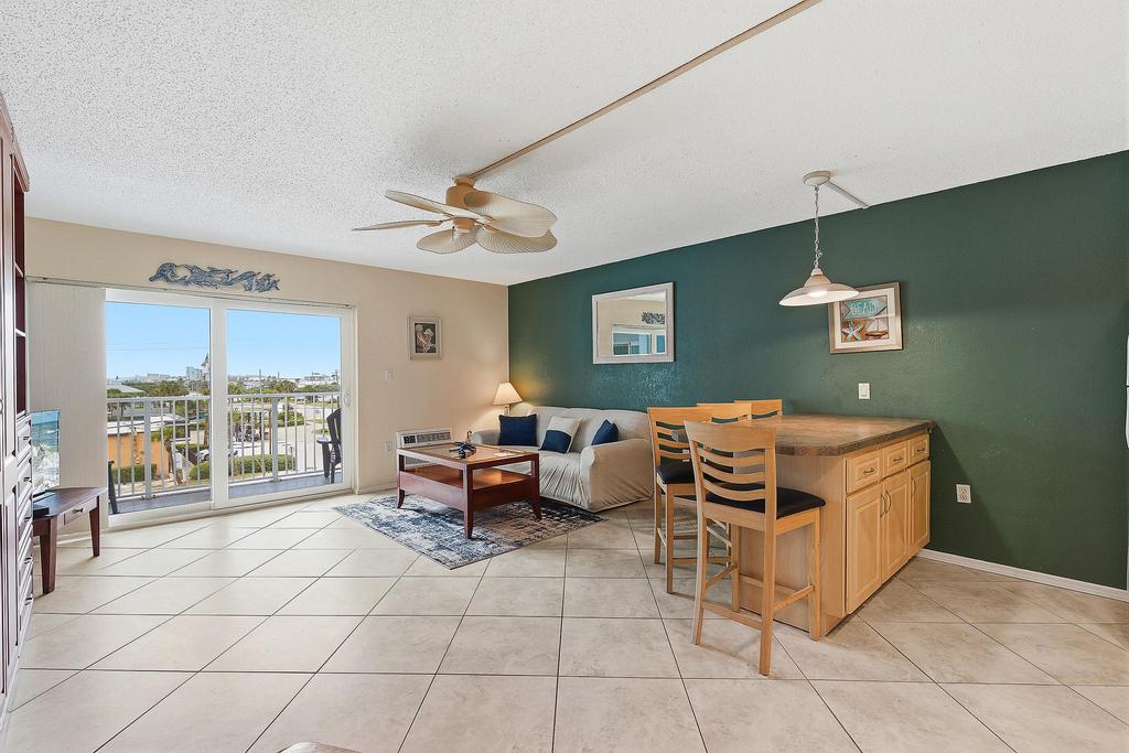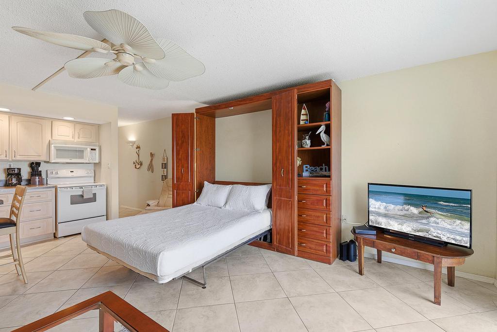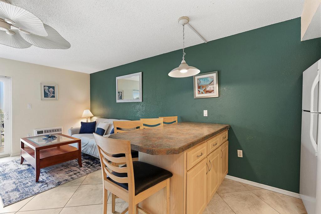 Welcome to Mariner’s Cove 405, a charming studio condo located in the quiet and comfortable Mariner’s Cove complex in New Smyrna Beach. This top-floor corner unit offers the perfect blend of comfort, convenience, and stunning coastal views, located directly across the street from the beach with a crosswalk for easy beach access. This bright and inviting space features a private balcony where you can relax and enjoy refreshing ocean breezes. Inside, the condo is thoughtfully designed with a comfortable queen bed sleeper sofa and a full bathroom, making it an ideal getaway for couples or friends traveling together.