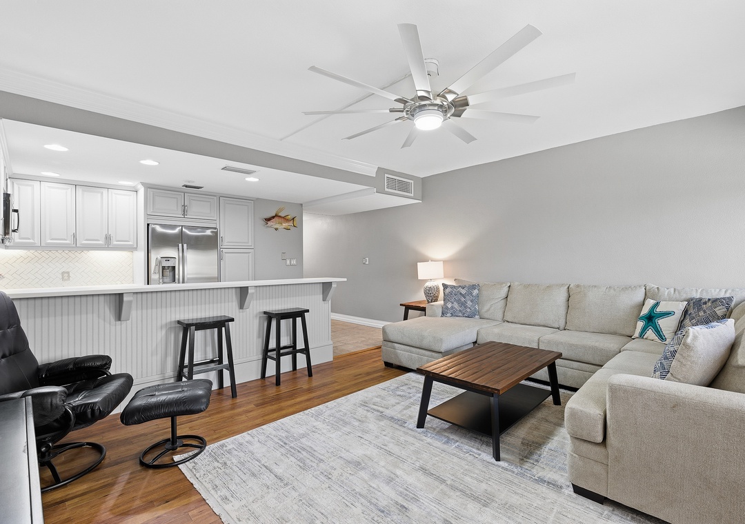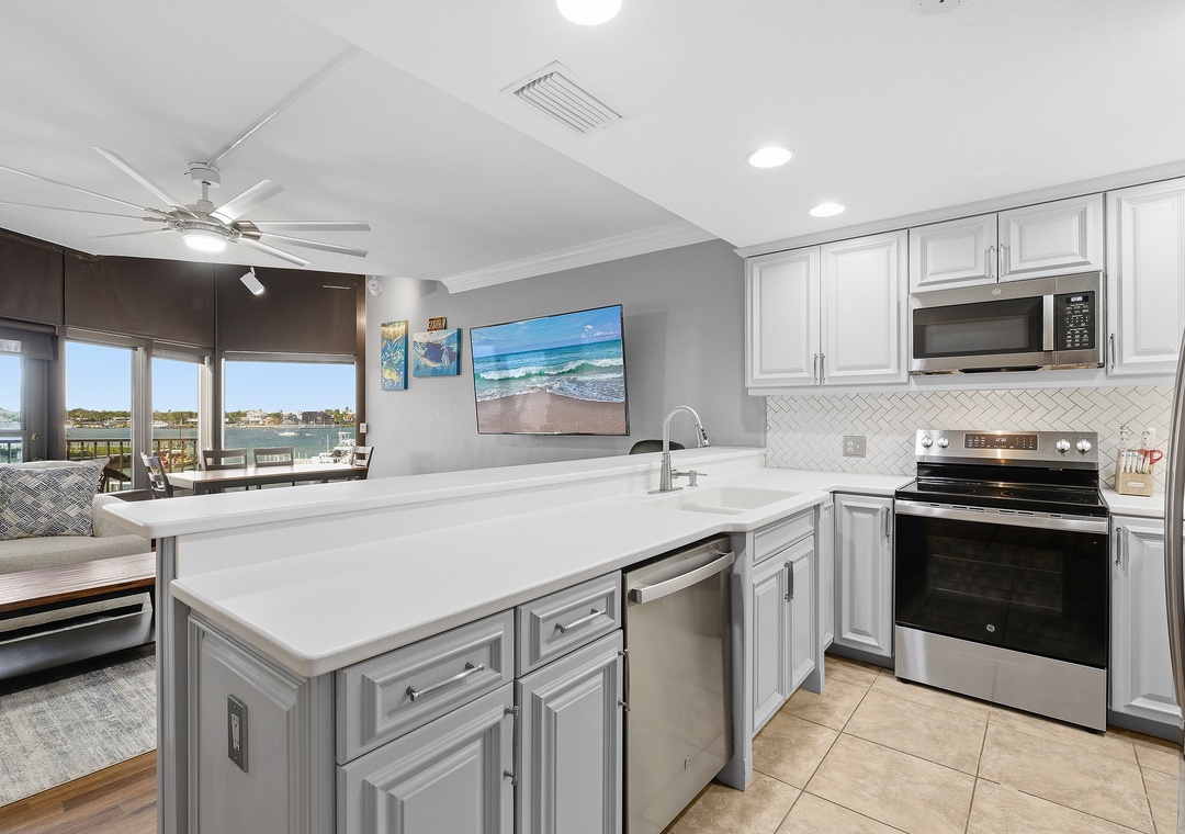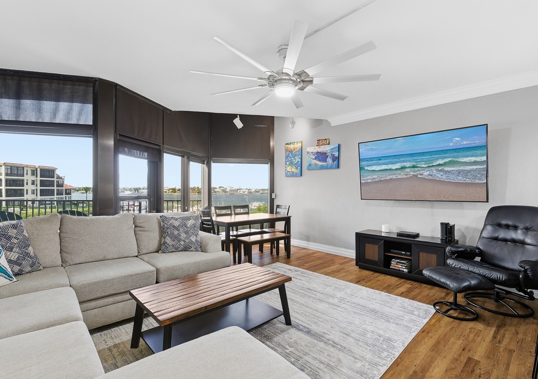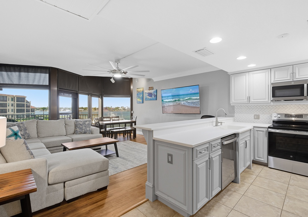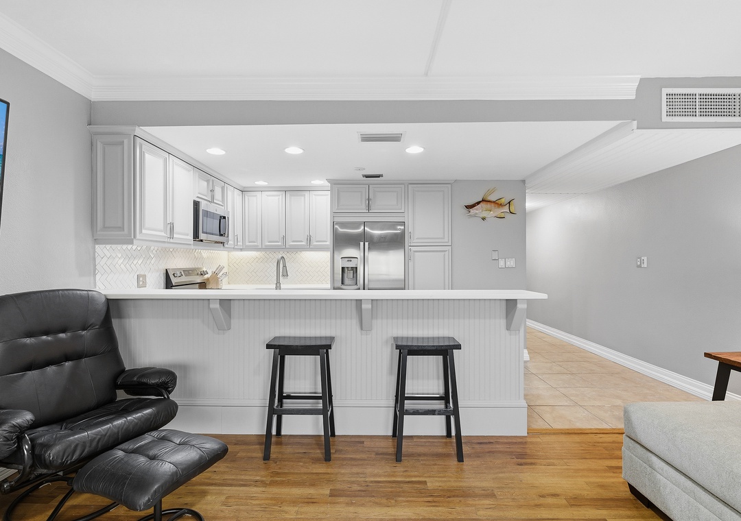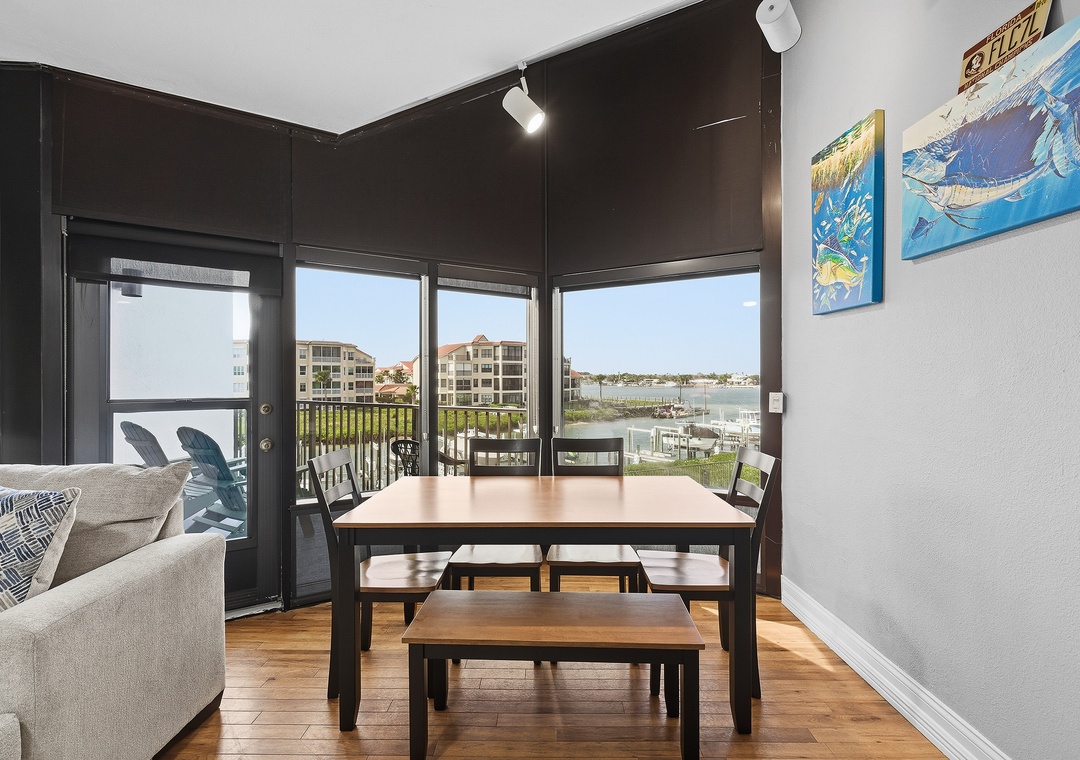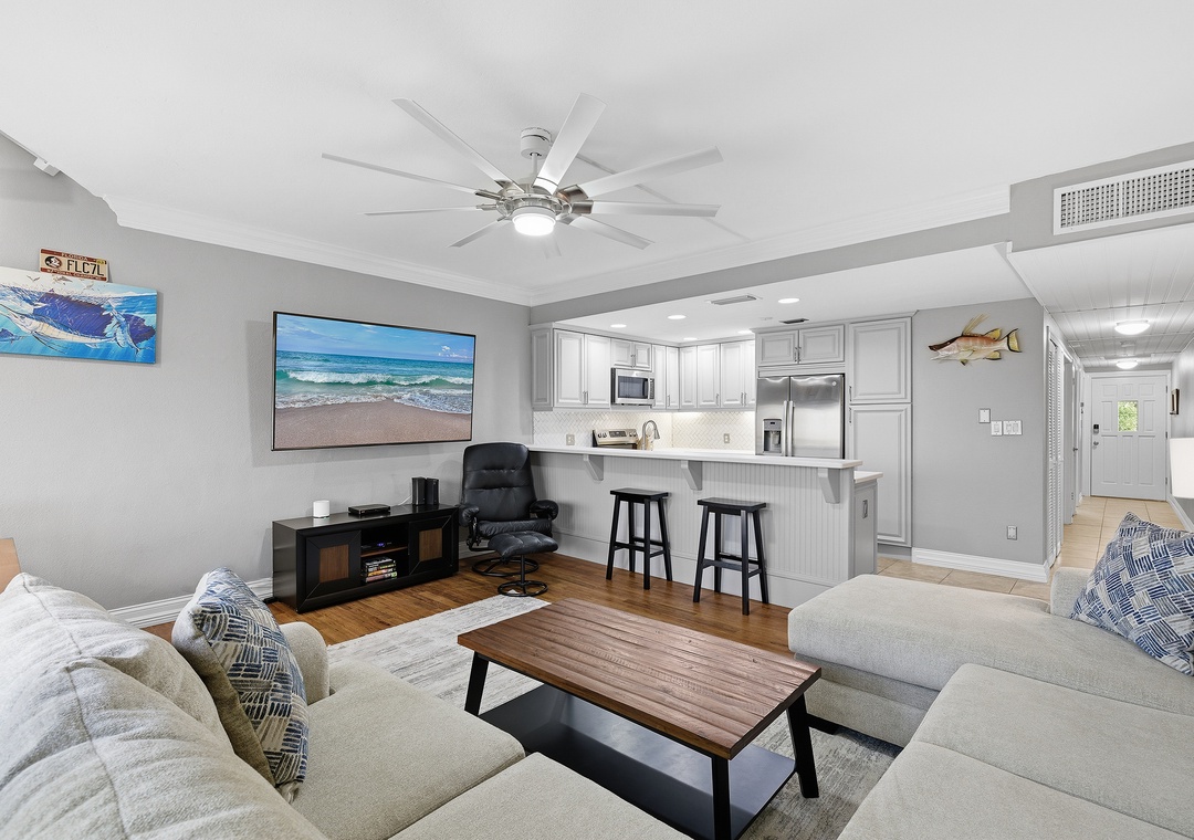 Welcome to Marker 33 #2D3, a serene waterfront retreat overlooking the Intracoastal Waterway, where a spacious, private-feeling balcony offers front-row views of dolphins, manatees, turtles, native birds, and passing boats. This stair-access-only residence includes assigned covered parking below, making it live like a third-floor unit, and is tucked within a quiet complex near Callalisa Park, perfect for kayaking, fishing, and exploring the Indian River and Callalisa Creek. Inside, the open-concept kitchen, dining, and living areas showcase calming coastal tones and stunning water views from nearly every angle, complemented by a large sectional for relaxing, a king suite with an ensuite bath and dual-head walk-in shower, a queen bedroom with its own ensuite shower, and an in-unit washer and dryer. Pet-friendly for up to two dogs under 20 pounds (fees apply), this ideally located home offers walkable access to local favorites like Norwood’s Treehouse and The Garlic, easy trips to Flagler Avenue and Canal Street for shopping and dining, and the beach just one mile away.