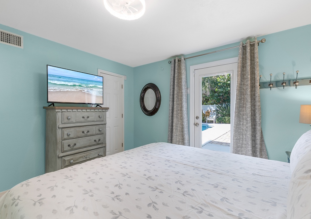 I could not believe how nice of a stay this house is. With 3 king sized bedrooms everyone had room to have privacy when need be. No one had to share a bedroom or bathroom with any other person staying in my group. And with two full size fully equipped kitchens and a grill outside not only was the feasting excellent but every cheif had their own space. All of this made our stay fell like we was at home. The washer and dryer was a life saver as none of us had packed enough clothes. And the hot water on demand was a great touch as far as I was concered. Not once did anyone in our party ever have a cold shower or have to wait for a shower. But none of this is what made this house the best. The very short walk to the beach was one of my favorite things. I started two of my days here walking along the beach front while the sun came up, what a treat. Another nice touch was the bicycles for the beach, I found myself enjoying the morning one day just riding up the beach. And afterwards taking a shower in the outdoor shower. A first for me but it was great to get all the sweat and sand off. The privacy fence that sorround the heated pool, grill and outdoor entertainment area is nice. We all enjoy swiming and talking under the warm Florida sun in our little private backyard. This house really offeres alot and I will be sure to book it every time I come back to Florida.- Reviewed On: 3/15/2019