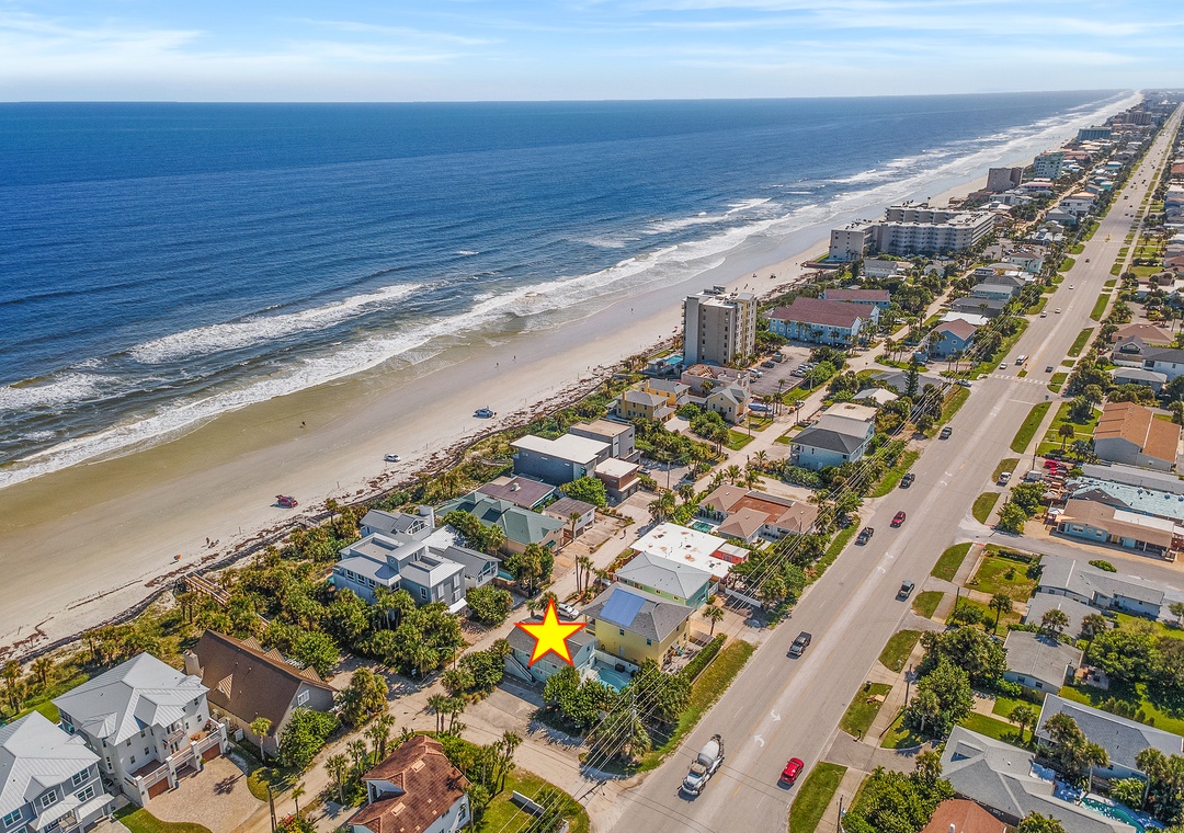 This house was awesome! It was 50 steps one way to the beach in the am and about 1 out my back bedroom door to the private heated pool in the evenings - where there were plenty of lounge chairs, umbrellas and a BBQ grille. What more could you ask for? It's freshly painted a cheery lime green color, welcoming you when you pull up (also parking for 5). It was cutely decorated and smelled great when we set foot inside. The kitchens are new (yes kitchens - plural - one upstairs and one down). There's plenty of the little things like paper towels, toilet paper, soap, detergent - even dryer sheets, its great if you get in late (which we did). The beach was amazing! And the house is equipped for it. There were like 4 beach cruiser bicycles, boogie boards, small easy-to-carry lawn chairs - almost anything you can think of needing. We were a party of 9 (two families) - and the house provides enough space to be together and get a break from one another. My kids had a great time and protested leaving. Can't blame them. We will definitely visit again. Loved New Smyrna Beach!!- Reviewed On: 5/19/2017