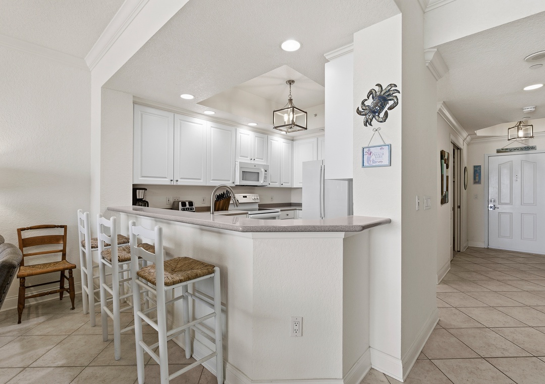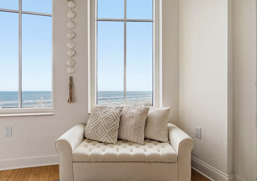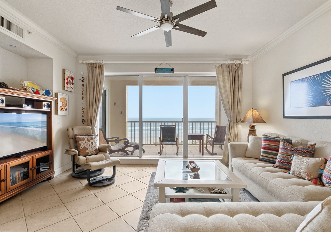 The primary bedroom features a comfy king bed, a private ensuite bath, and balcony access with gorgeous Atlantic views—ideal for slow mornings with coffee or winding down to the sound of the waves. The guest bedroom offers a cozy queen bed, while the third bedroom includes a daybed with trundle, making it perfect for kids or extra guests. Step onto the spacious oceanfront balcony to soak up salty air and sweeping beach views after a day in the sun. With fun, coastal décor throughout and room for up to six guests, this condo is also dog and cat friendly for pets 40 lbs and under (fees apply), so your furry companions can join the adventure too. Professionally managed with 24/7 guest service, this beachy retreat makes it easy to unplug, unwind, and enjoy every moment together.