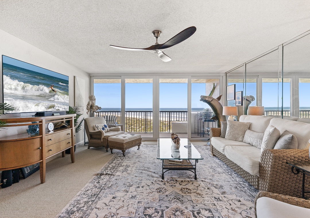 Step into oceanfront Inlet at Minorca 904 and be captivated by a stunning wall displaying the crashing waves of the Atlantic. Enjoy the splendor of New Smyrna Beach from the breezy balcony or coastal living room couch in this spacious 2 bedroom, 2 bathroom condo.