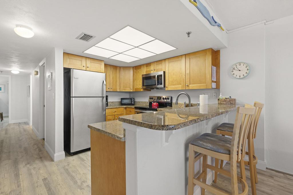 Step out onto the large private balcony and take in sweeping views of the Atlantic Ocean - perfect for morning coffee or evening relaxation. The complex itself is quiet and secure, offering direct beach access just steps from your door. Located only five minutes from the vibrant shops, dining, and nightlife of Flagler Avenue, you'll have the best of both tranquility and activity at your fingertips. Whether you're here to unwind by the waves or explore the charm of New Smyrna Beach, Moontide B103 offers a welcoming home base for your stay.