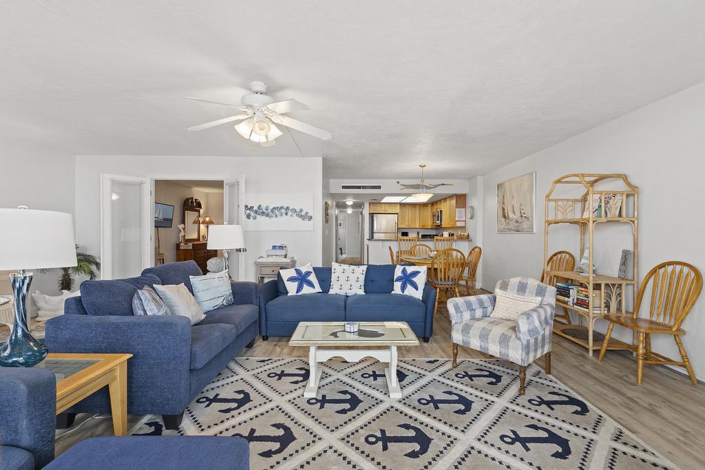 Welcome to Moontide Unit B103! This beautifully appointed 2-bedroom, 2-bathroom condo in New Smyrna Beach offers the perfect blend of comfort, convenience, and coastal charm. Situated in a beachfront complex on the highly sought-after non-driving section of the beach, this unit provides an ideal setting for relaxing getaways or extended stays. The spacious interior is thoughtfully furnished with everything you need, including a fully equipped kitchen, in-unit washer and dryer, and modern, comfortable décor throughout. Each bedroom offers ample closet space and privacy, making it ideal for families or couples traveling together.