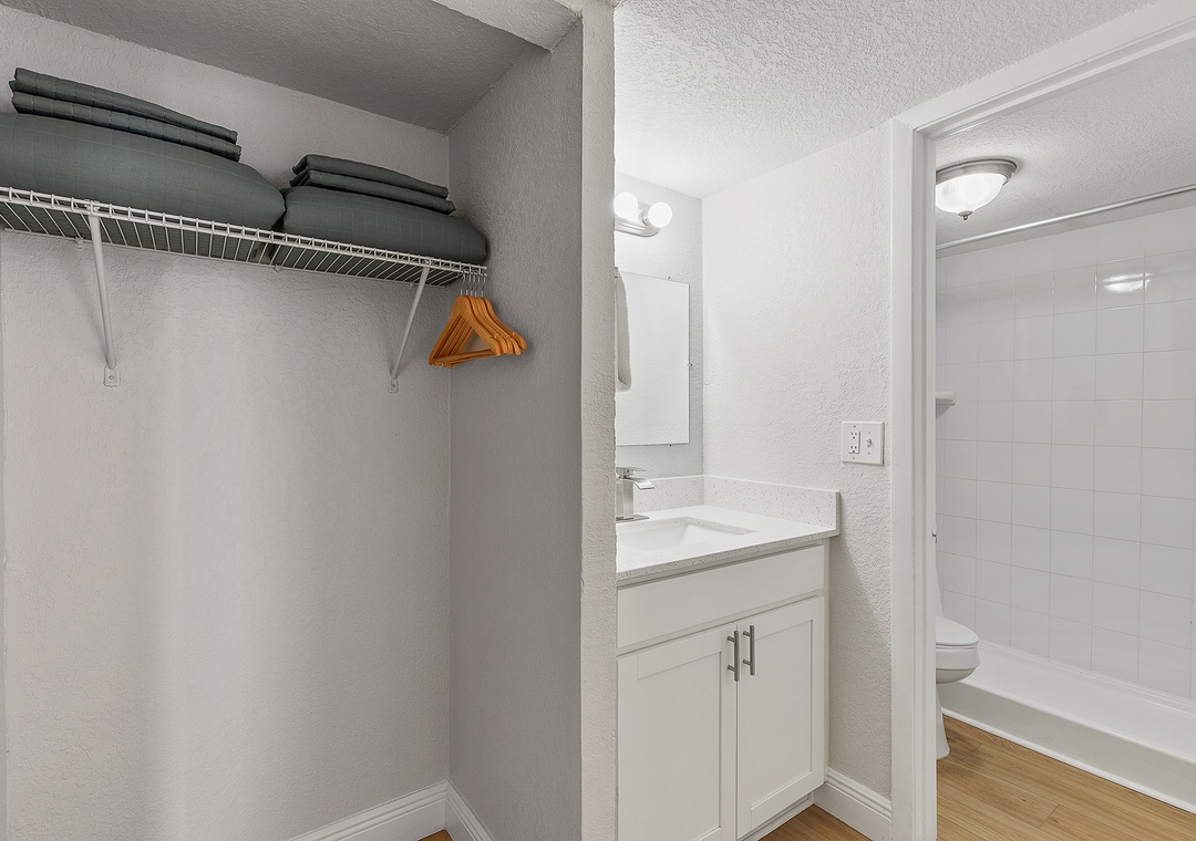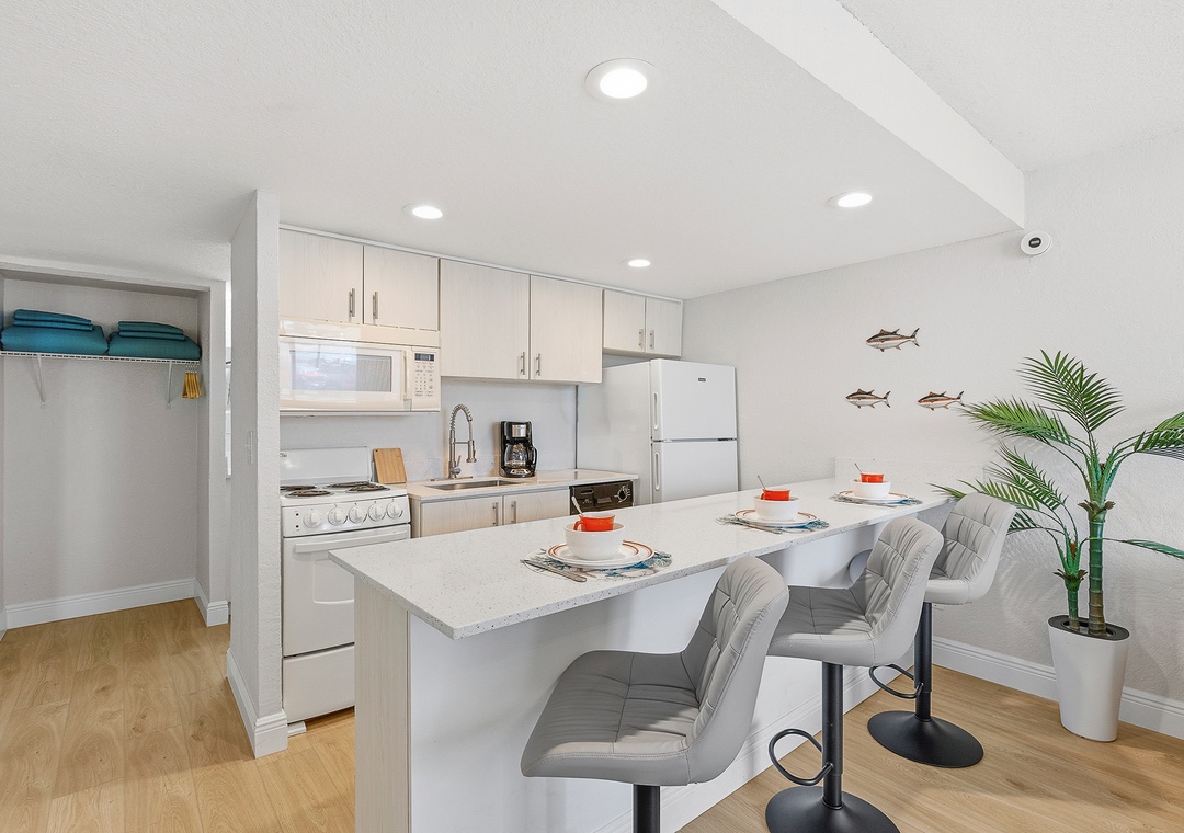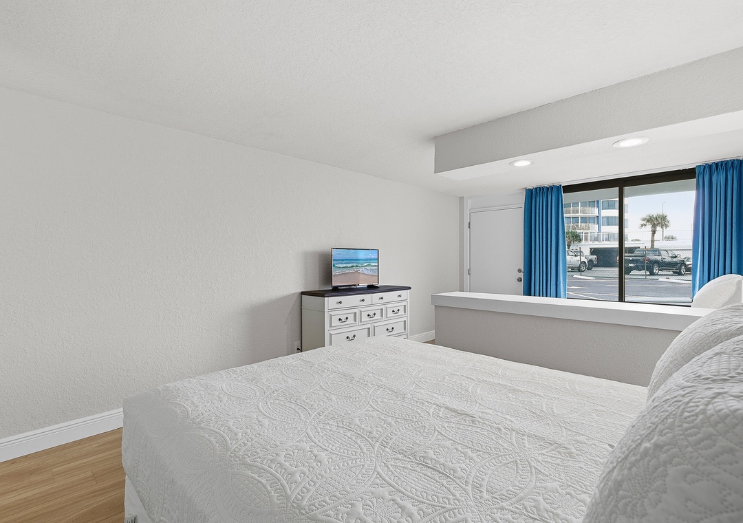 The building keeps things simple and relaxed, with a shared ground-floor laundry room, smart TVs with streaming services, and unassigned parking for one vehicle. Two closet spaces and practical storage throughout help keep things organized for longer stays. You're just minutes from Daytona's best dining, beach bars, shopping, and attractions, but tucked away just enough to come back and truly unwind at the end of the day.