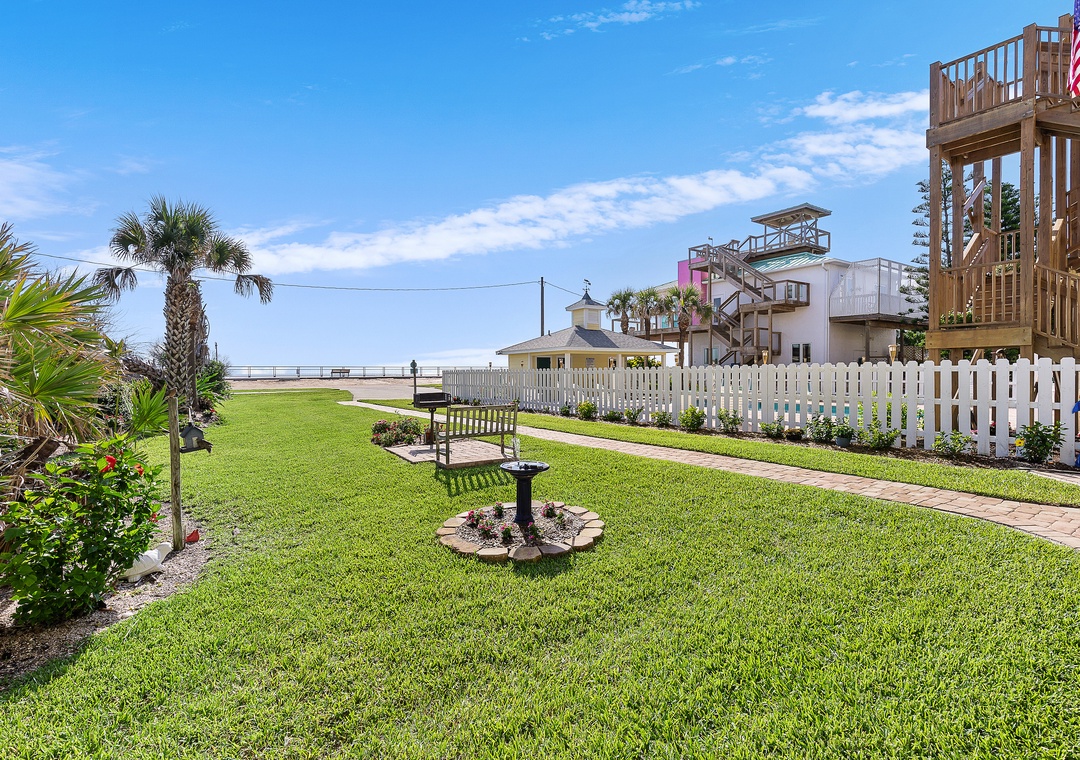 Each unit at Ocean Club at Turtle Mound provides beautiful beach and ocean views. Every unit is equipped with a full kitchen and its own washer and dryer. Located on the non-driving portion of the beach, the open beach provides plenty of room to enjoy long walks, shell hunting, sand castle building, and games of Frisbee. Pet friendly Mary Bethune Park with tennis courts, basketball hoops, children's play sets, and a fishing pier, is adjacent to Ocean Club at Turtle Mound.