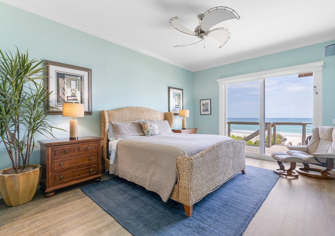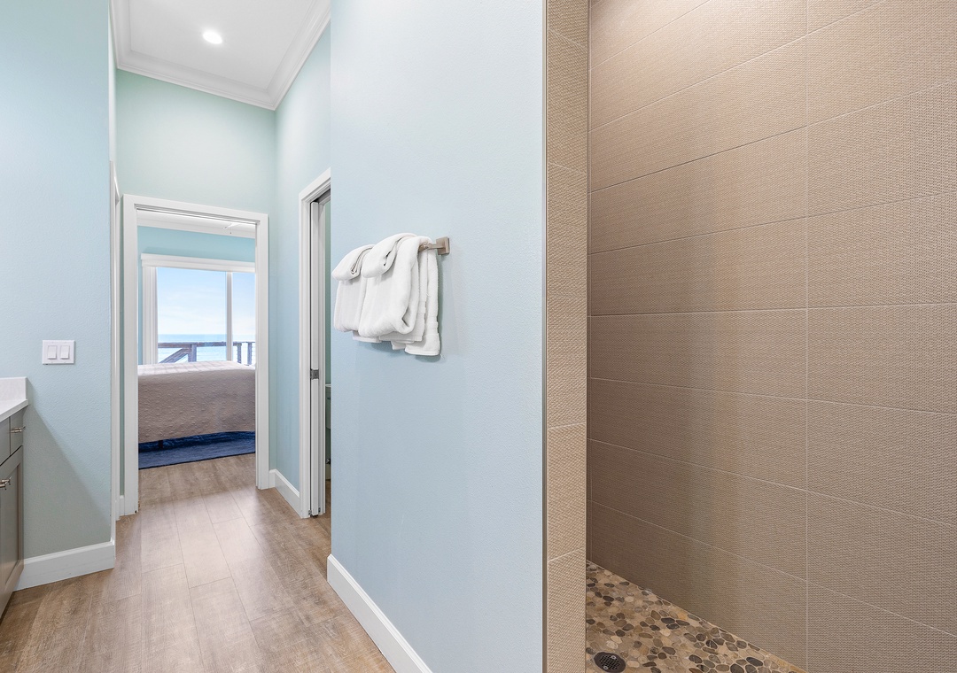 Ocean Dream has 6 bedrooms, 5 full bathrooms, and 2 half bathrooms. Thanks to such a large layout, everyone in your group will have privacy. There are 2 primary suites located on each floor. Both bedrooms have king beds, patio/balcony access, Smart TVs, and adjoining bathrooms with showers.