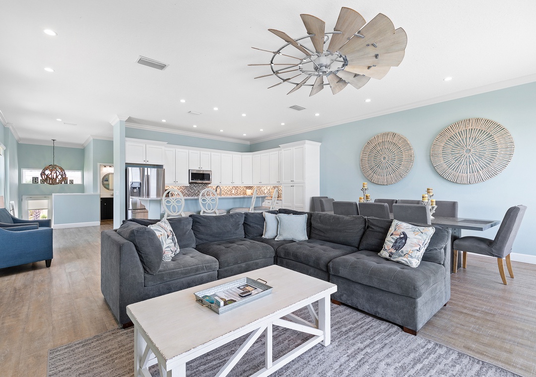 This house is perfect for multiple families. It is very large and spacious, with 3 different living areas to allow for everyone to spread out. The pictures don't do it justice. We also appreciated that a pair of bedrooms and bathrooms, along with a small living room, were off to the side to allow for additional separation as needed. The location of the house is perfect! Access to the beach directly from the house was easy and convenient and the pool is wonderful to have right in the backyard. There are no neighbors directly on either side of the house and it was quiet throughout the day/night. We did have some issues with the cleanliness of the property (dirty dishes, large amounts of built up dust on most surfaces, sunflower seeds all over the outside patio) as well as with the appliances/beds (the upstairs fridge did not cool, the bunk beds had a completely broken ladder and very loose screws, malfunctioning door alarms). The mgmt property did offer to schedule cleaning during our visit, but we had already taken care of the issues ourselves at that point. The quality of the items within the home was fair (furniture, bed comfort, appliances, kitchen equipment). We were excited to grill on the large gas grill, but despite having 3 propane tanks present, they were all empty. Overall though, we still enjoyed this property. The beach/pool and general scale of the living spaces within the house make it a great place to stay.- Reviewed On: 7/28/2024