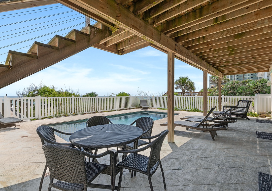 Even with the Atlantic in your backyard, you and yours will spend most afternoons around the oceanfront pool. The home's private pool is 12 x 24 feet making it a great place to cool off from the Florida sun. You'll appreciate how the backyard is fenced in making it safe for children to play. When you're ready to take your sunbathing to the sand, all you have to do is open the gate and walk down the home's boardwalk to the shore.