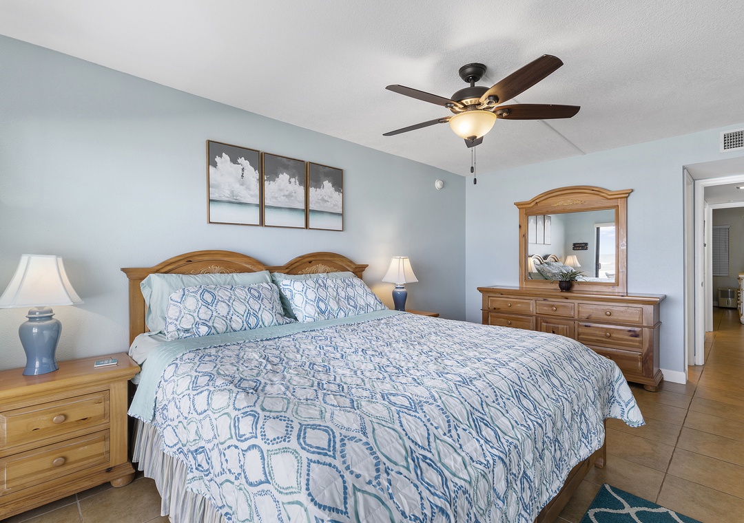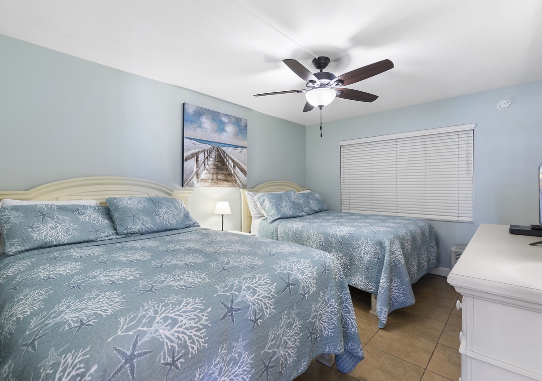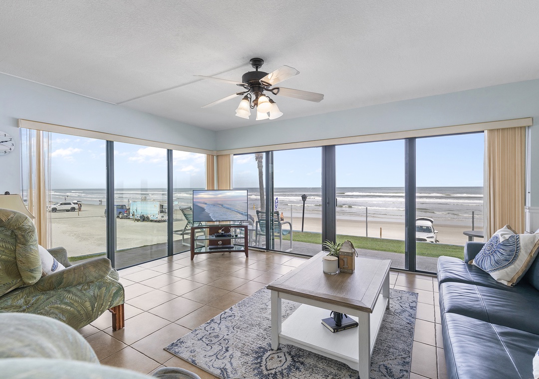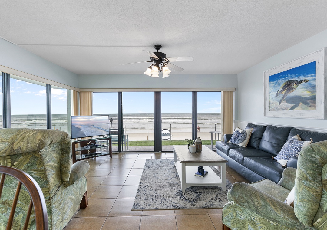 Welcome to Ocean Reef Villas 110! This corner oceanfront 3 bedroom, 2 bathroom condo sleeps 8 guests comfortably. The primary bedroom has a king, Guest bedroom 1 has 2 queen beds and Guest bedroom 2 holds 2 twin beds.