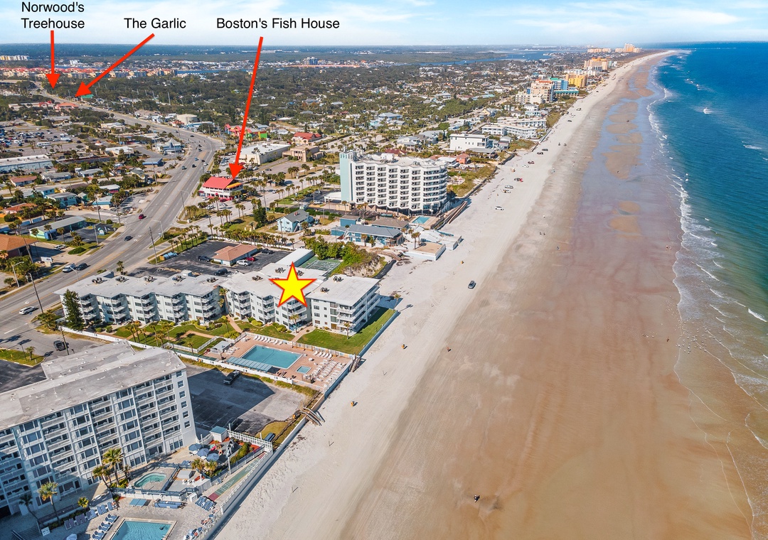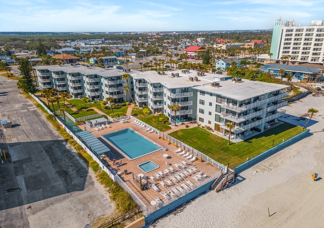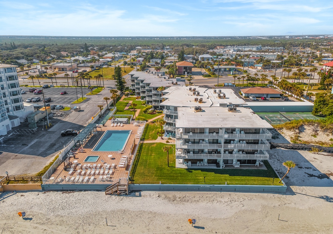 Ocean Reef Villas is a small complex with 48 units. It features a pool and kiddie pool overlooking the driving part of New Smyrna Beach.