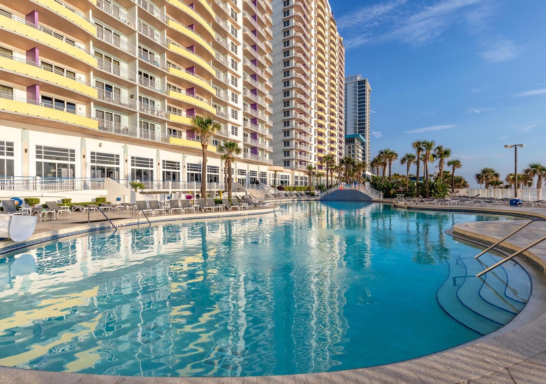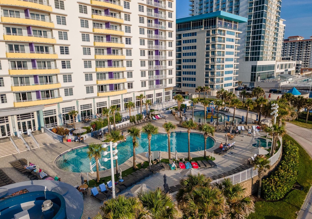 We headed there for Biketoberfest and Main Street is walkable. Also the property with all the pools is amazing. The sun will be gone at around 2.00pm because the hotel is so high that the shadow cover all pool and lounge chair area.- Reviewed On: 10/22/2024