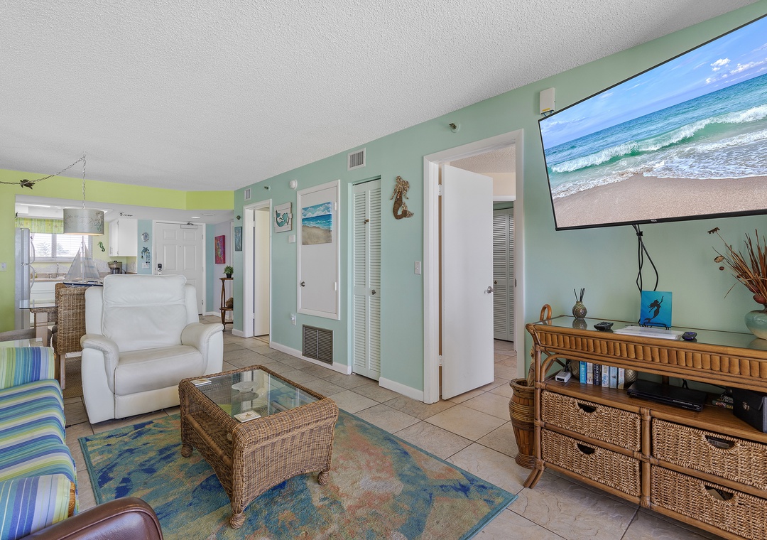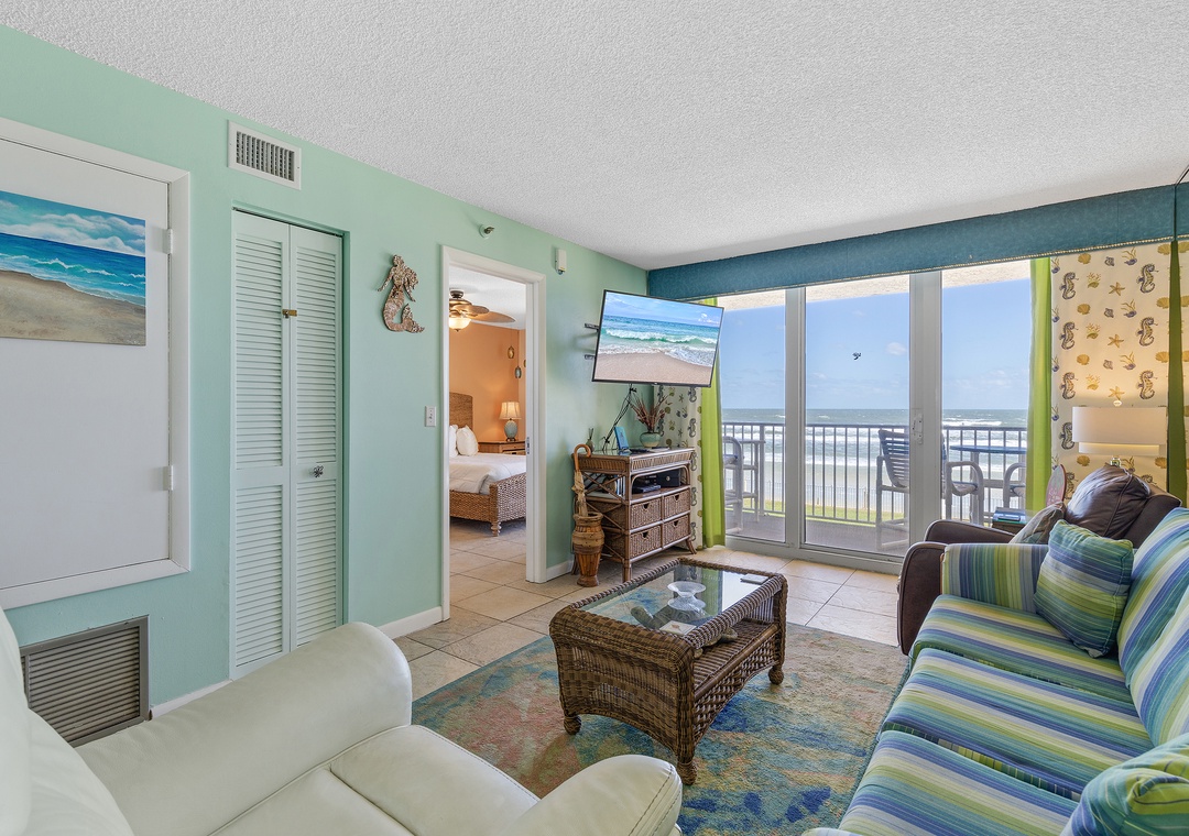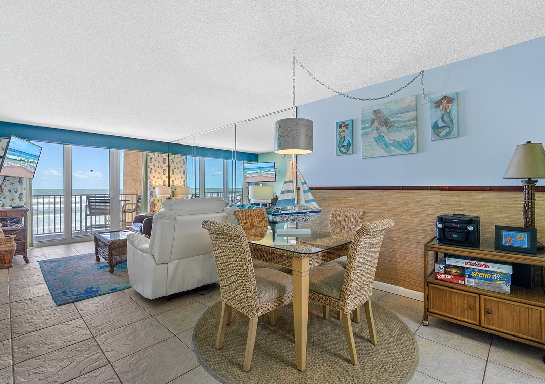 The Atlantic Ocean is the first sight to greet you upon walking in. Paired with the outdoor scenery are bright colored walls, wicker accents, and tile flooring throughout. You'll immediately feel yourself going into vacation mode.