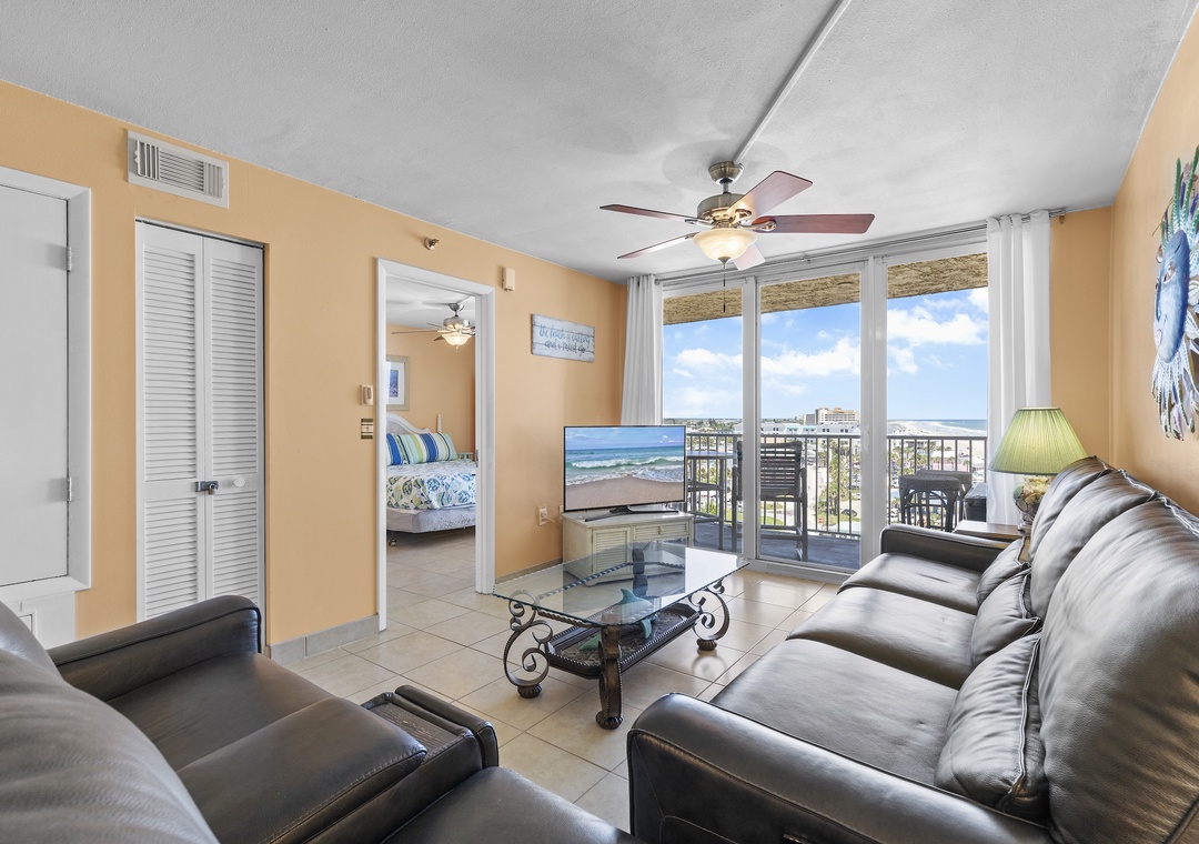 You'll never feel like you left the beach when you stay at Oceania Plaza 808! With the ocean stretching out from your balcony and the miles of golden shores, you'll forever remember your vacation for the views of the most beautiful Florida beach and Atlantic Ave with Flagler Ave in the distance. Below your balcony you can catch all the action at Toni and Joe's Patio Restaurant and be able to walk over any time. This two-bedroom, two-bathroom condo provides plenty of space for you and your family, to stretch out and relax. Both your aesthetic and practical needs are met in this fully stocked kitchen. You'll find yourself retreating to the living room to watch your favorite show chilled back on reclining sofas or catch up on some much-needed sleep in the primary bedroom's king bed with private balcony entrance so you can watch the morning splendor from the comfort of your bed. You will find 2 twin beds in the guest bedroom, making this condo sleep 4 comfortably. Come start lasting memories at Oceania Plaza 808!
