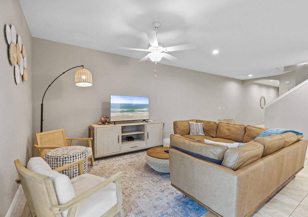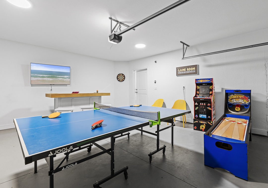 Welcome to Oceans 25 in Daytona Beach Shores, where modern convenience meets coastal living. This made for fun 3-bedroom, 2.5-bath townhome, is a perfect family vacation spot with a short walk to the beach. On the 2nd floor, you will find the king primary bedroom, guest bedroom 1 with a queen bed, and guest bedroom 2 with a full bed and 2 twin beds accommodating 8 guests comfortably. After a fun day in the sun, send your kiddos to the garage converted into a game room with a pool table and ping pong table while the chef in the family prepares a delicious meal in the well-equipped spacious kitchen. This Townhome is a perfect place to entertain your family and Friends. Come see why the fun never stops at Lazy Beach Days.