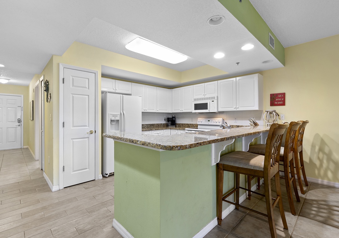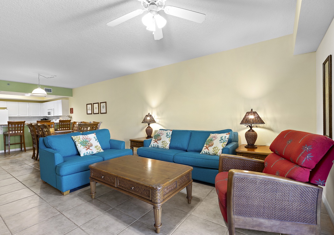 The fully equipped kitchen is ready for anything from morning coffee to family dinners. After a long day at the beach, kick back in the cozy living area or step out onto your private balcony to enjoy the evening breeze. Designed with relaxation in mind, this condo has plenty of space and comfort for families or groups.