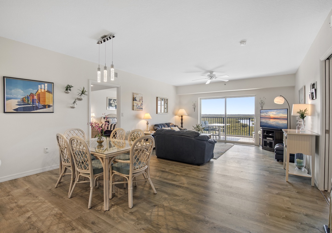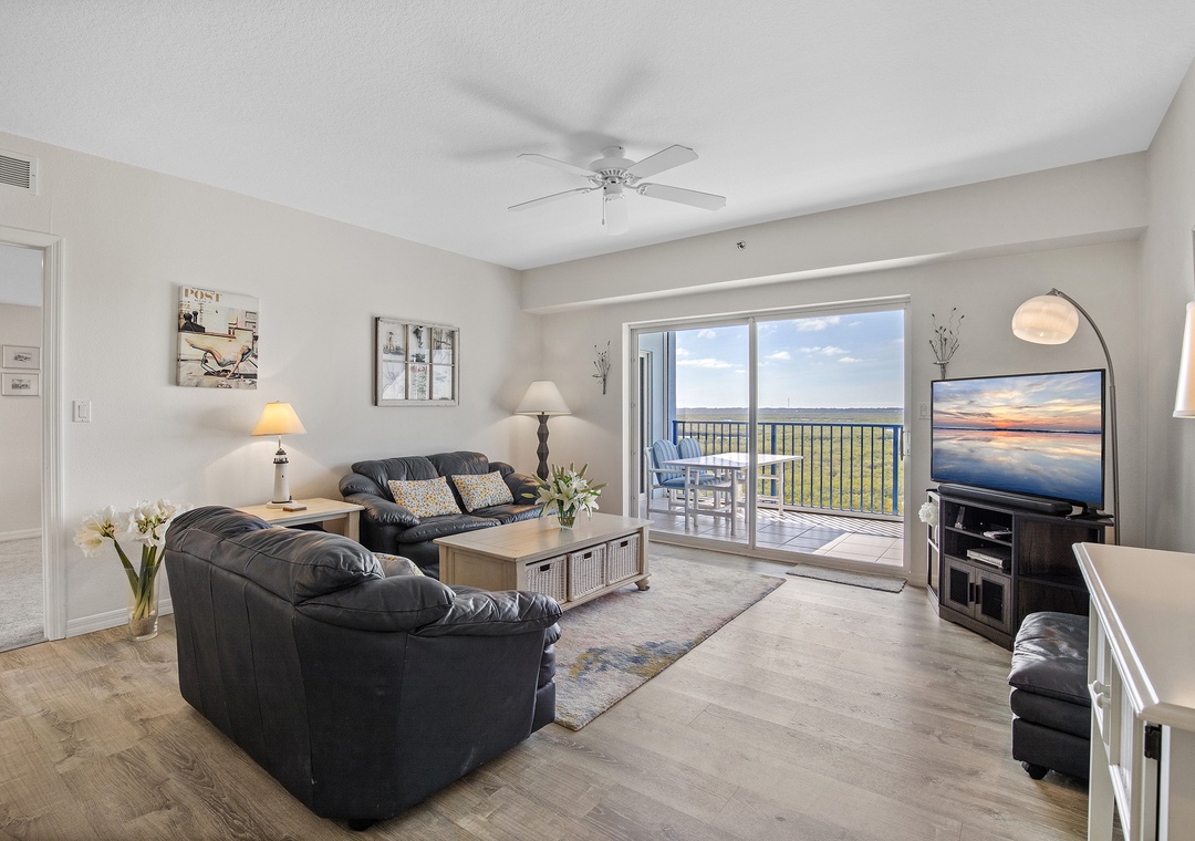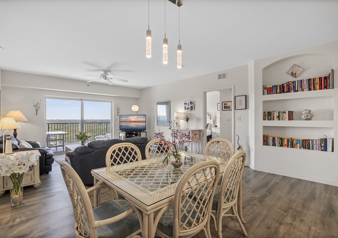 Welcome to Oceanwalk 10-602! This spacious 3-bedroom, 3-bathroom unit is designed for comfort and relaxation, featuring two master suites ideal for families or groups of up to six. The primary bedroom boasts a queen-size bed and a luxurious master bathroom complete with dual sinks and a jacuzzi tub. The second bedroom, another master suite, offers a king-size bed and an attached bathroom with a stand-up shower. The third bedroom is perfect for kids, equipped with two twin beds and ample playing space. Enjoy breathtaking views of the serene Mosquito Lagoon from your private space. Gather in the open, fully-equipped kitchen to cook and connect, with every appliance provided to make you feel right at home. Whether you're savoring the stunning views, exploring nearby attractions, or simply relaxing in this thoughtfully designed retreat, your family is sure to create unforgettable memories during your stay.