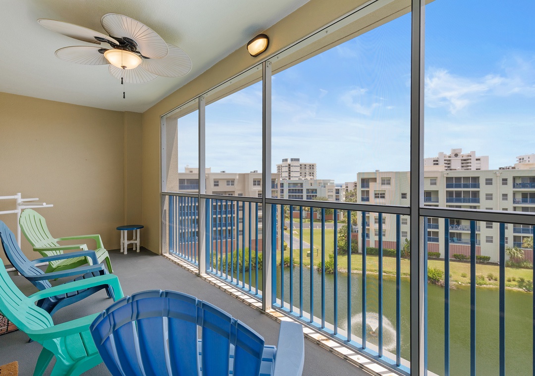 * Spacious Private Balcony with Great Pond Views