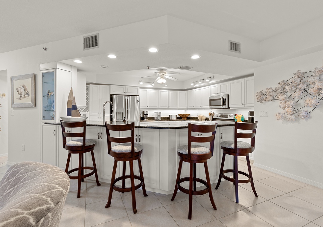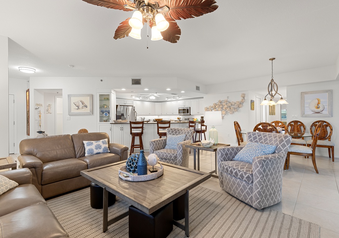 Welcome to Oceanwalk 11-605, your perfect coastal escape! This stunning 3-bedroom, 3.5-bath condo combines comfort, style, and functionality—ideal for families or groups seeking a relaxing beach retreat. The open-concept living area is filled with natural light and coastal charm, while the chef’s kitchen shines with upgraded stainless steel appliances, granite countertops, and crisp white cabinetry. Whether it’s breakfast at the bar, a sunset dinner at the dining table, or cocktails on the spacious terrace, every space is designed for effortless entertaining and relaxation.