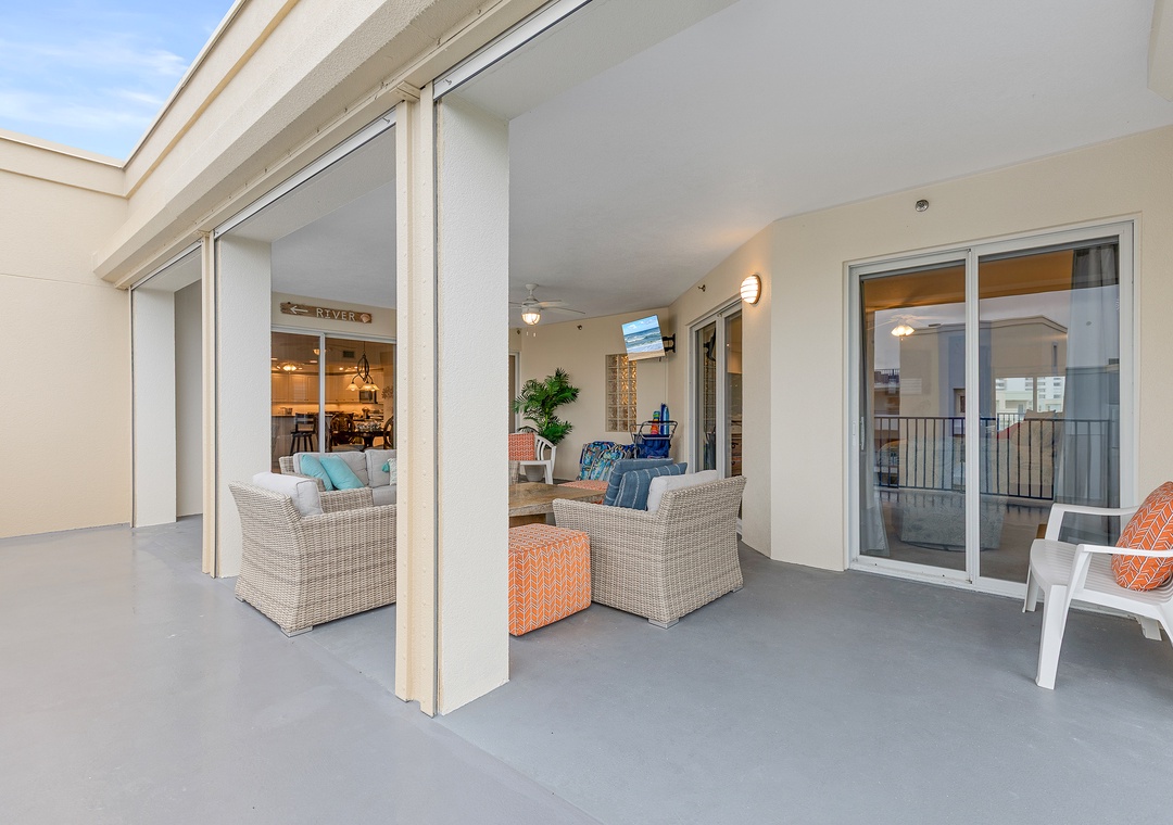 Oceanwalk is between the beach and a large natural estuary, perfect for the beach lover (across the street from the no-drive beach and within 2 miles of the beach driving access), nature lover (kayaking through the wetlands may be fun), or someone who just wants to relax without traveling anywhere. Oceanwalk Condominiums, well-regarded for their central location, large floor plans, and the finest amenities in New Smyrna, are located in the south beach area of New Smyrna Beach. The 20-building condo complex is located across the street from the beach and features up-to-date, king-size rooms in many different floor plans. These well-appointed condominiums boast wide balconies, spacious master bedrooms, big guest bedrooms, a deluxe master bathroom, a living room, a dining room, a kitchen, a laundry room, and more. Every one of the buildings has shared elevated sun decks on the first-floor level and a rooftop observation deck. Onsite amenities include an exercise room, saunas, two seasonally heated pools, a poolside spa, a bocce court, two tennis courts with lighting, two shuffleboard courts, a basketball hoop, a BBQ gas grill area, and two gorgeous clubhouses.