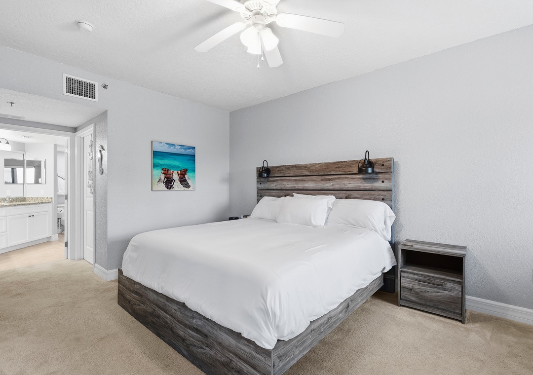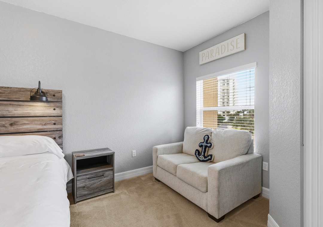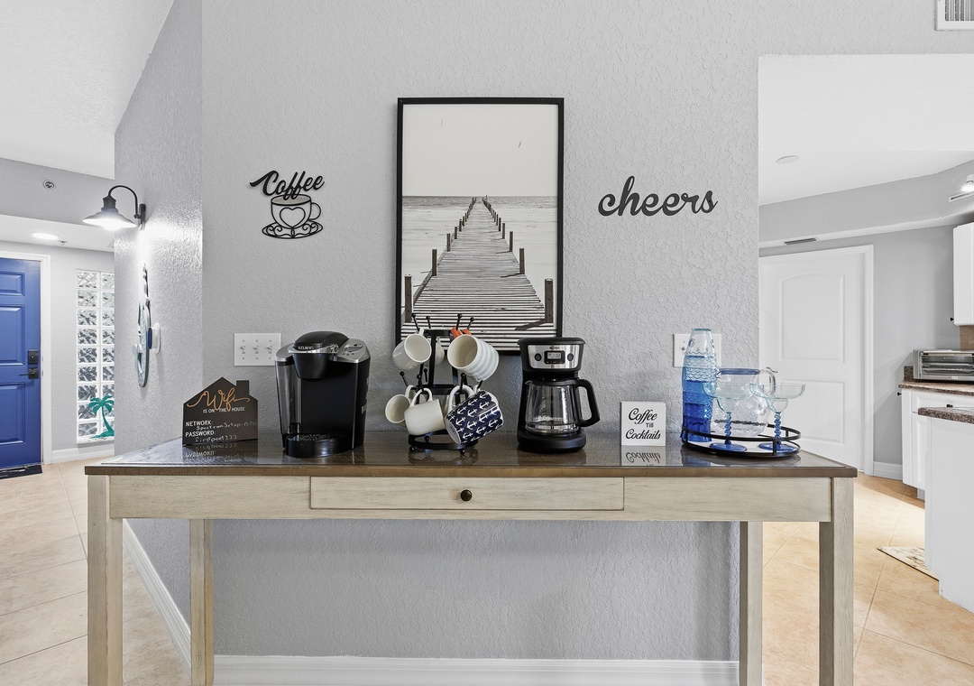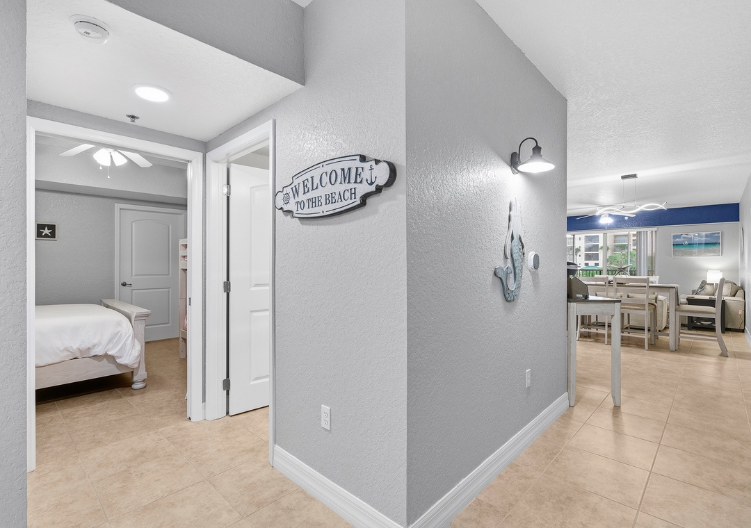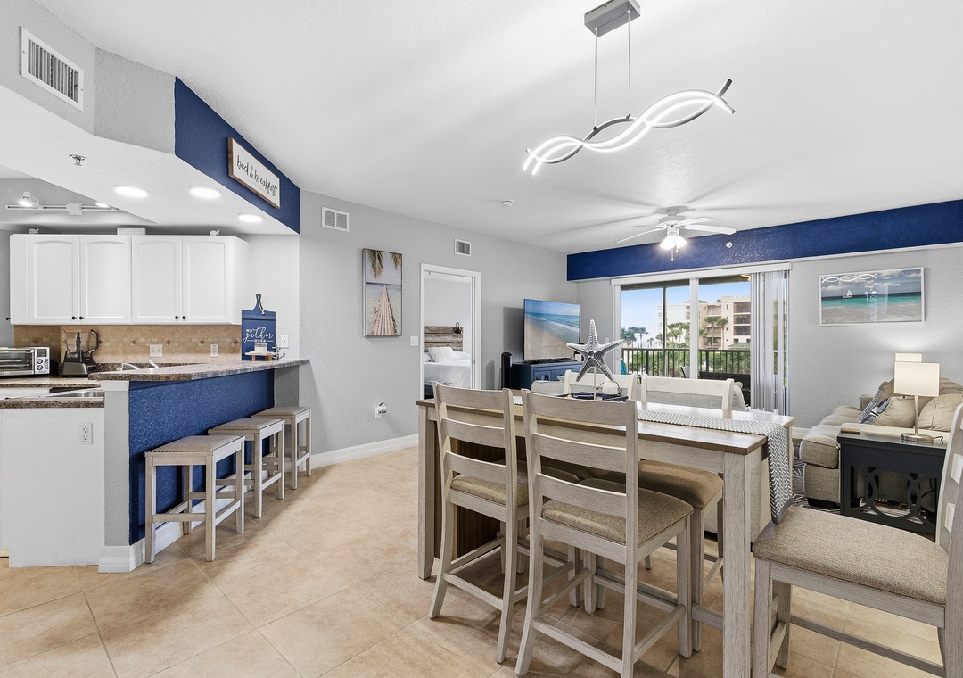 Welcome to Oceanwalk 12-302! This condo offers guests an inviting vacation stay in this two-bedroom, two-bathroom condo and treats your family to a pampered beach escape. Cool colors of coastal blues and grays blend wondrously with warm whites and tans creating the perfect blend of color palate for a coastal retreat. Soft and inviting bedding, plus a welcome coffee greeting station says this condo owner wants you to feel right at home and be treated with luxury.