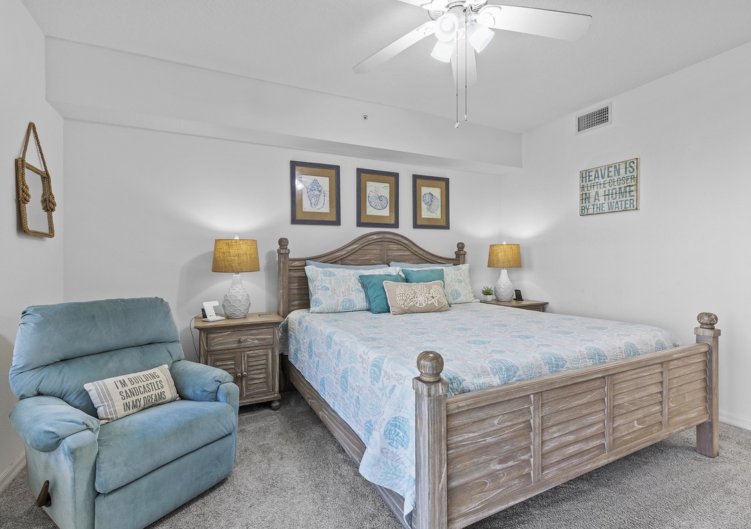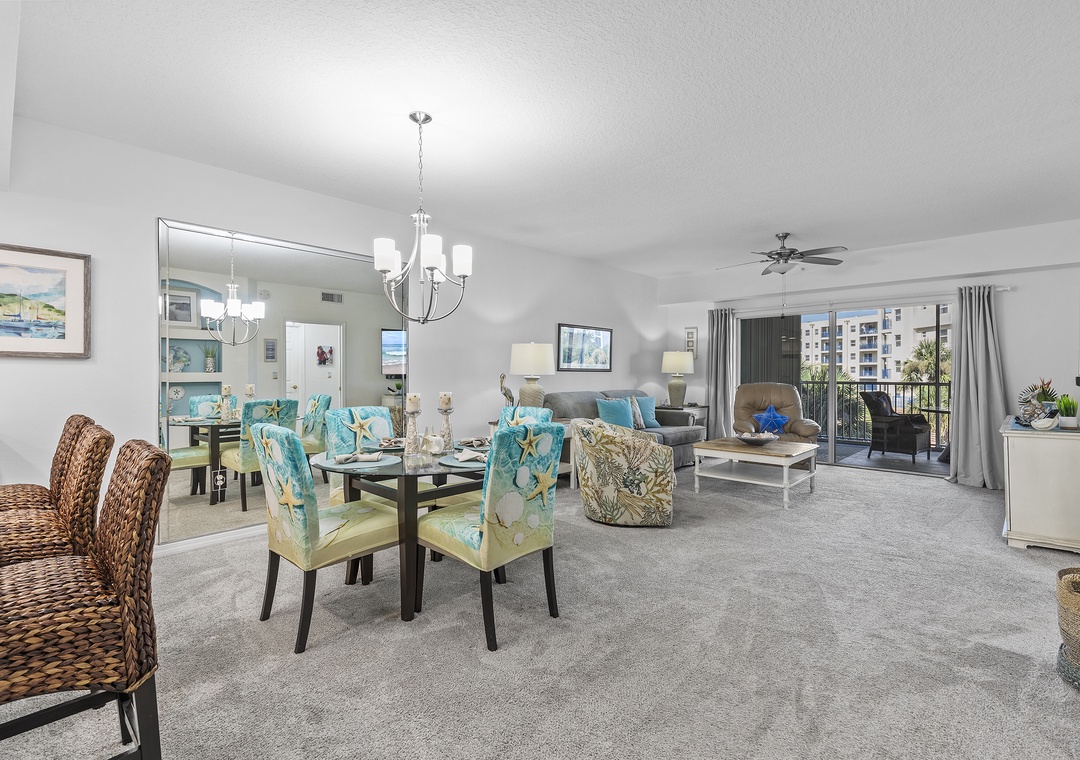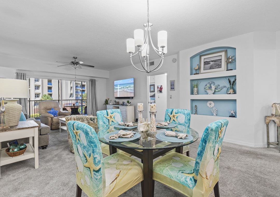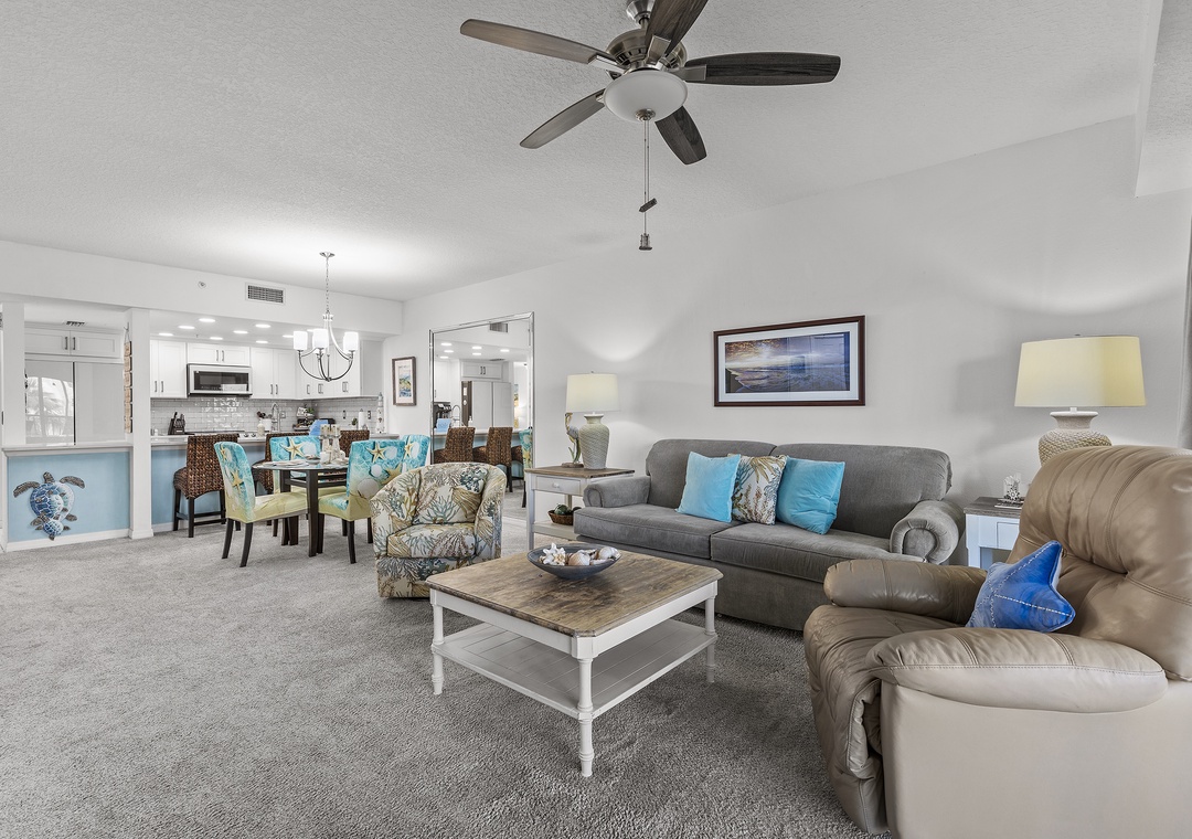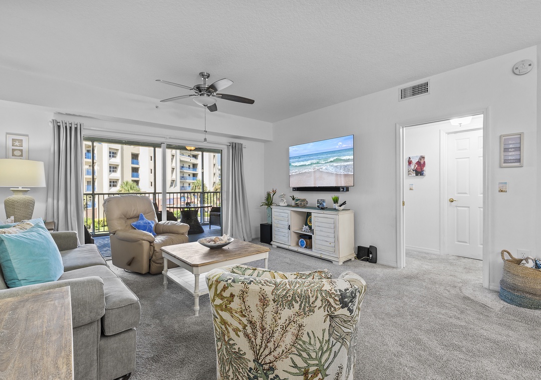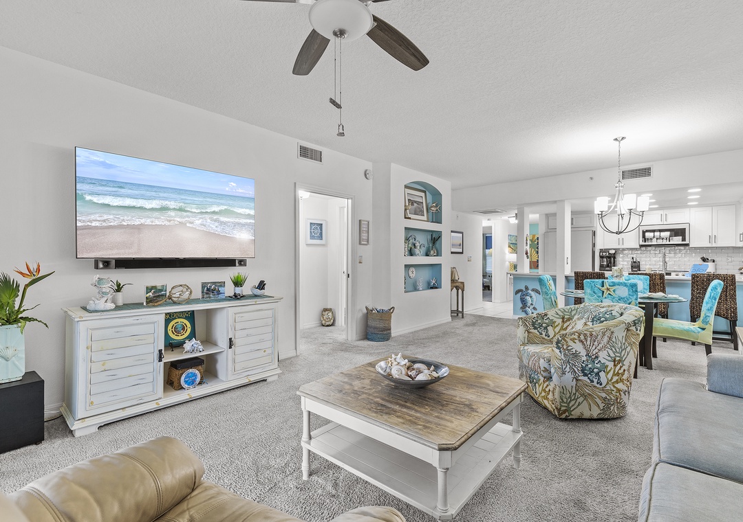 When you're not tanning by the pool or walking on the beach, you'll love relaxing in the living area. This room holds a queen sleeper sofa, recliner, and armchair. Your family can gather in the evenings for your favorite movies on the 56" Smart TV equipped with cable and streaming service apps.