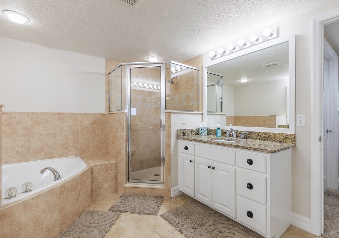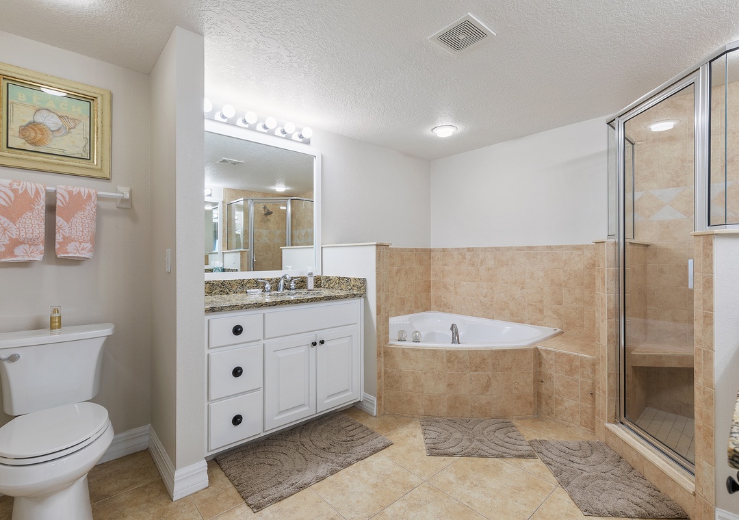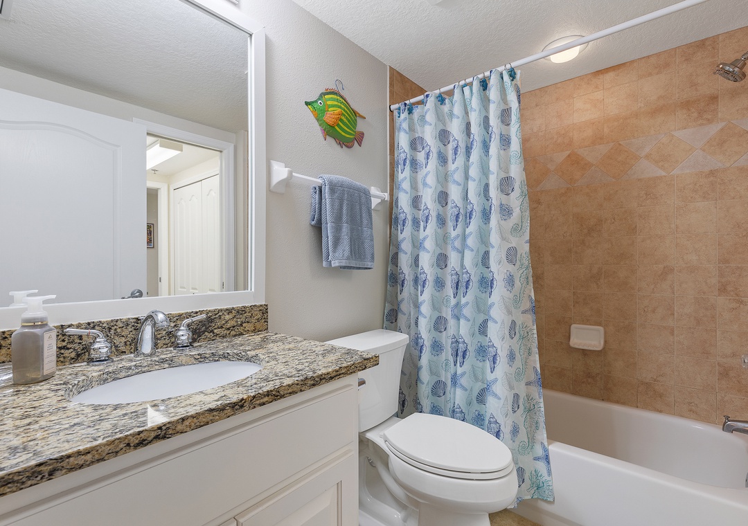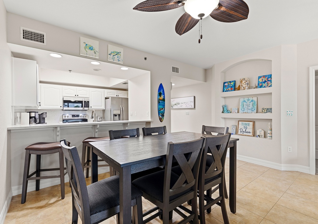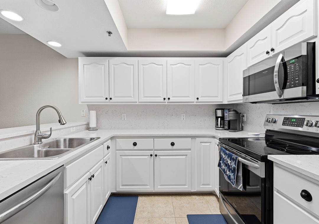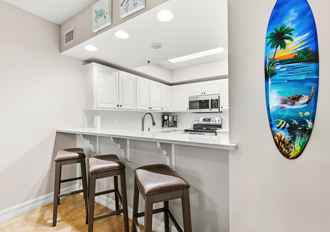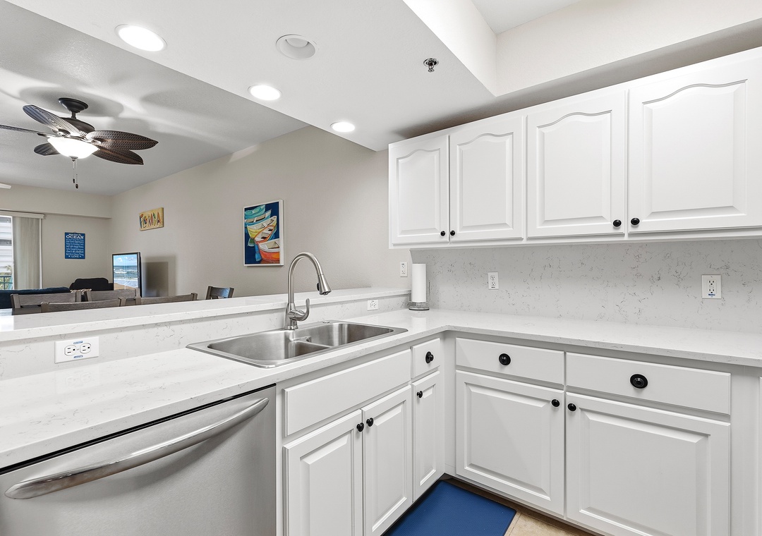 Oceanwalk 13-305 comfortably sleeps six in a high-end, coastal-inspired 3-bedroom, 2-bath condominium designed for gathering and relaxation. The spacious layout features a king bed in the primary suite with generous dresser space and private balcony access, a queen bed in the second bedroom, and a full-size bed in the third, all styled in bright, beachy tones. Guests will enjoy thoughtful touches like an oversized soaking tub, a welcoming open living environment, a rare peek of the Atlantic Ocean, and an easy short walk to the beach — making this the perfect setting for a relaxing getaway or memorable family retreat.