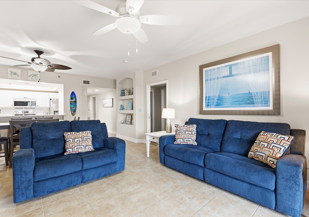 Oceanwalk Condominiums, well-regarded for their central location, large floor plans, and the finest amenities in New Smyrna, are located on the south beach area of New Smyrna Beach. The 20-building condo complex is located across the street from the beach and features up-to-date, king-size rooms in many different floor plans. These well-appointed condominiums boast wide balconies, spacious master bedrooms, big guest bedrooms, a deluxe master bathroom, living room, dining room, kitchen, laundry room, and more. Every one of the buildings has shared elevated sun decks on the first-floor level. Onsite amenities include an exercise room, saunas, two seasonally heated pools, a poolside spa, bocce court, two tennis courts with lighting, two shuffleboard courts, a basketball hoop, BBQ gas grill area and two gorgeous clubhouses.