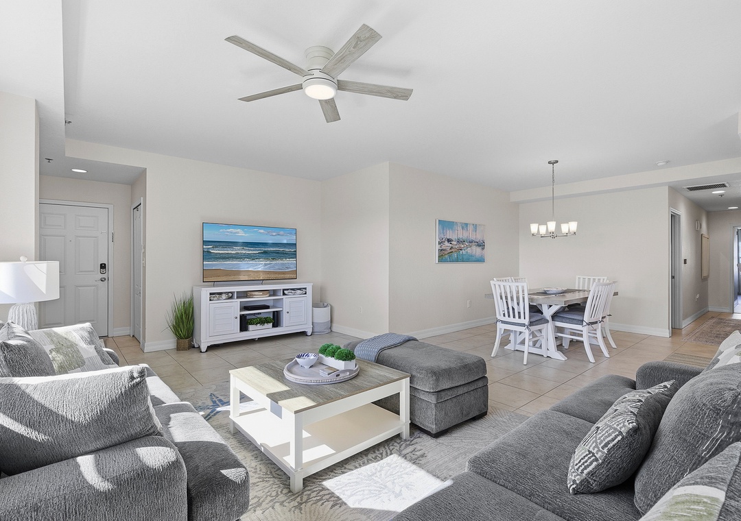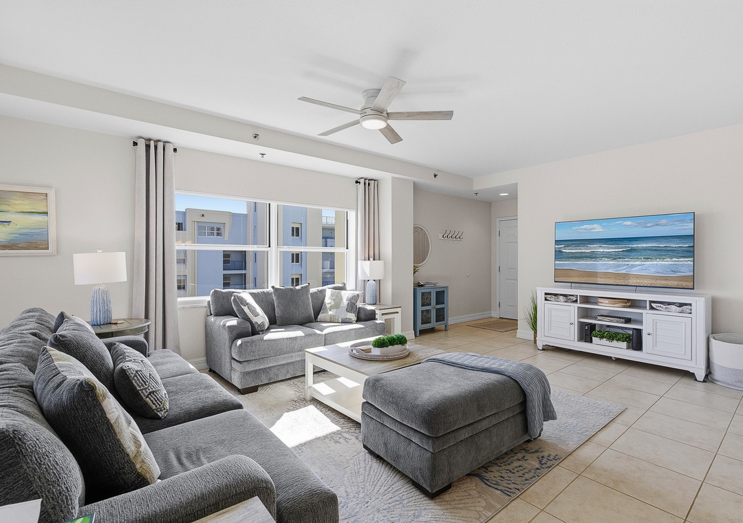 Inside, Oceanwalk 13-507 combines dreamy Atlantic views with a welcoming, home-like interior. This spacious three-bedroom, two-bathroom condo comfortably sleeps up to six guests, making it the perfect retreat for families or groups looking to relax, recharge, and enjoy the best of New Smyrna Beach.