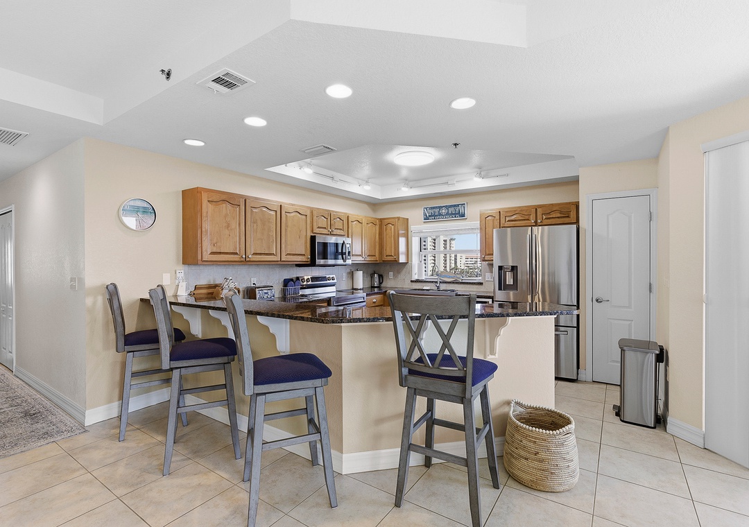 You’re also just steps away from two community pools located at Rec Center 1 and Rec Center 2, and the unit sits directly across from the elevator, making trips to the pool or beach effortless.