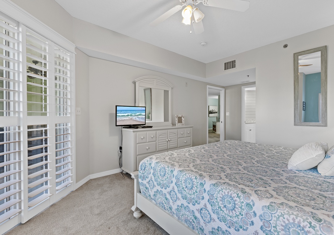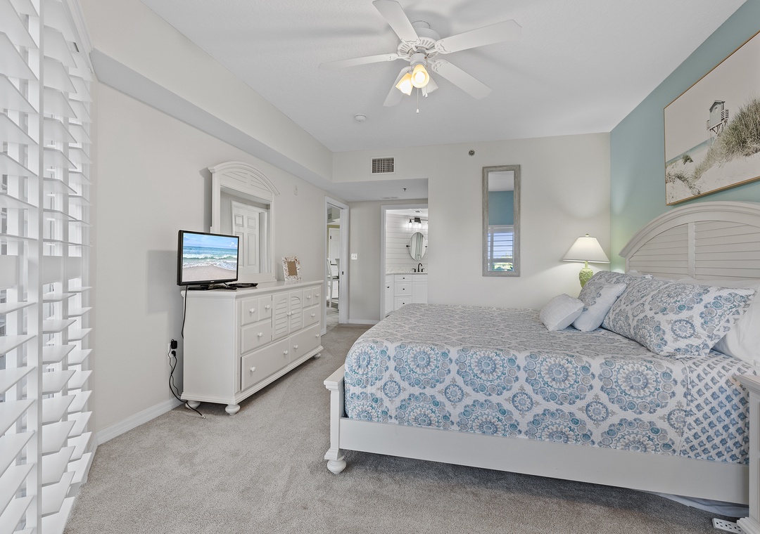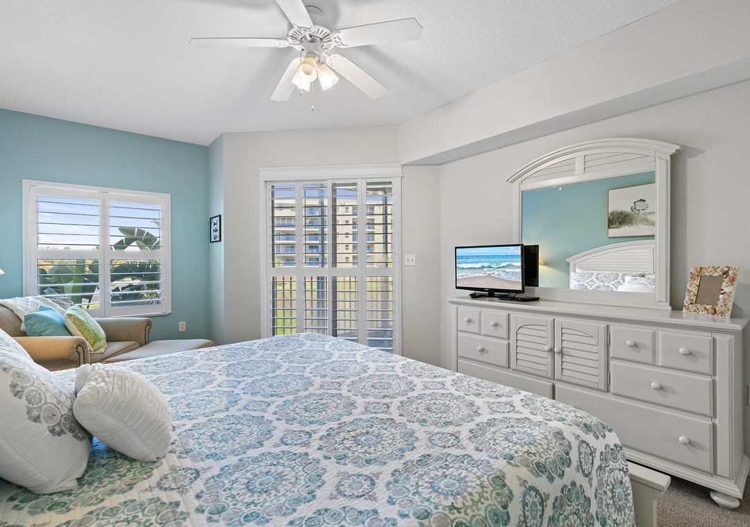Primary Bedroom: King Bed with Ensuite Bathroom and Balcony Access
