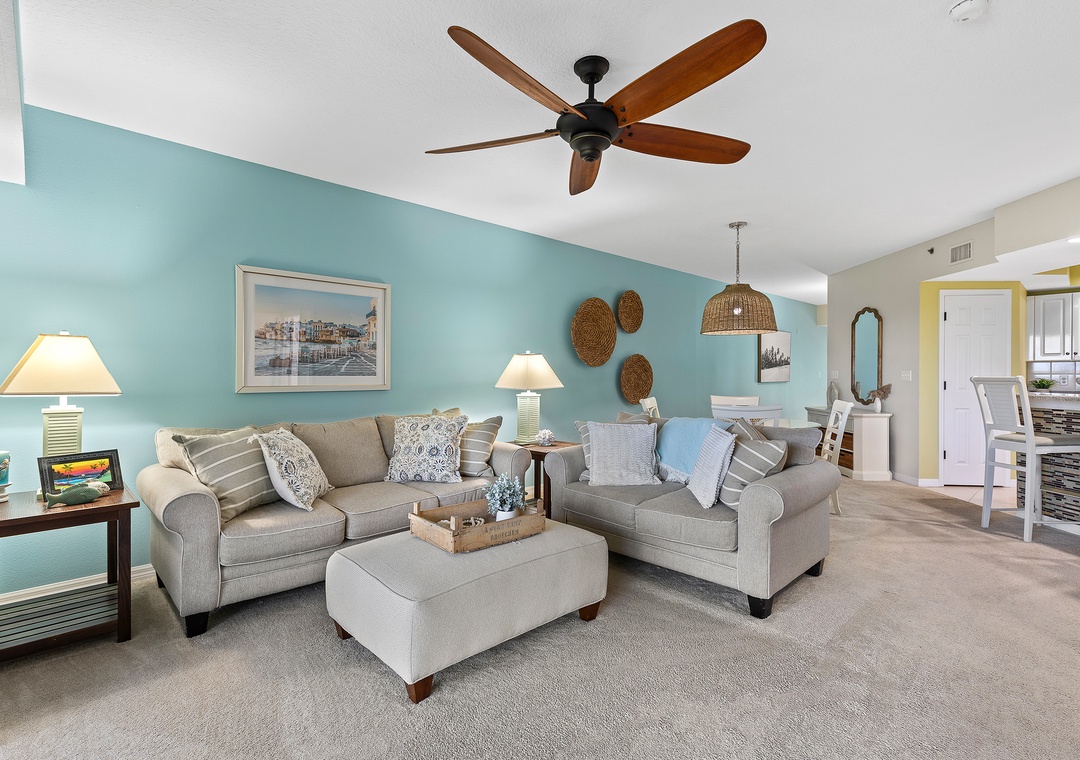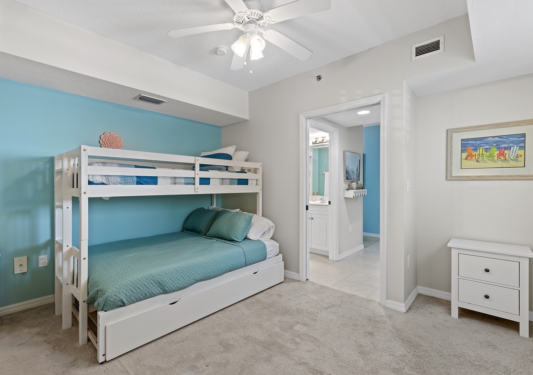 Escape to Oceanwalk 15-202, the perfect home away from home! Step into this exquisite 2 bedroom, 2 bath condo with a fully equipped kitchen. This unit boasts a king bed in the primary bedroom with walk in closet. Additionally, this room has private balcony access and an ensuite full bathroom with a beautiful stand up shower. The guest bedroom has a Twin Over Full Twin Trundle. The bathroom has a shower/tub combo. Step out of your condo and make your way to the pool, or sandy beach, or just relax on your spacious balcony with a cocktail or coffee in hand. After a long day out on the beach, relax in the living room with your loved ones and watch a movie on the large flatscreen TV. The fully stocked kitchen provides all the necessities to create the perfect gourmet meal for you and your crew. Join us now to embark on a journey of creating timeless beach memories that will be cherished for a lifetime at Oceanwalk 15-202.
