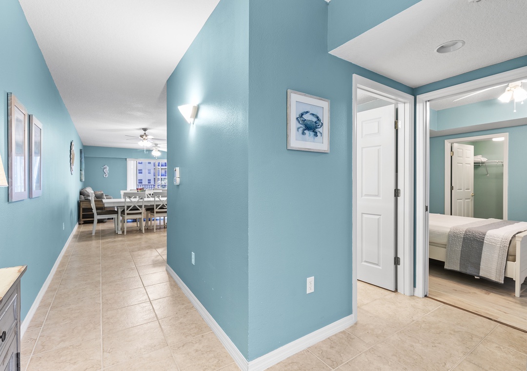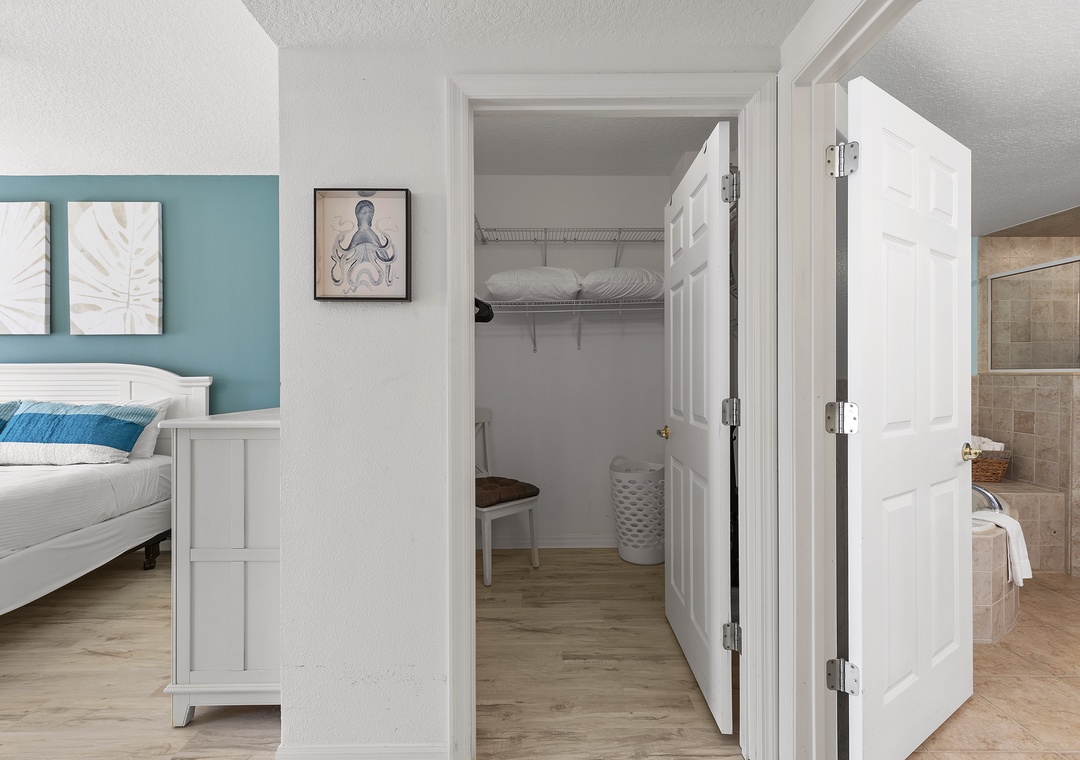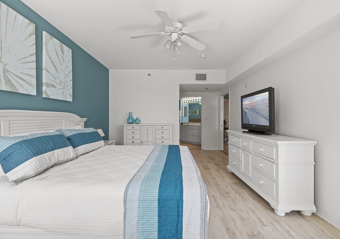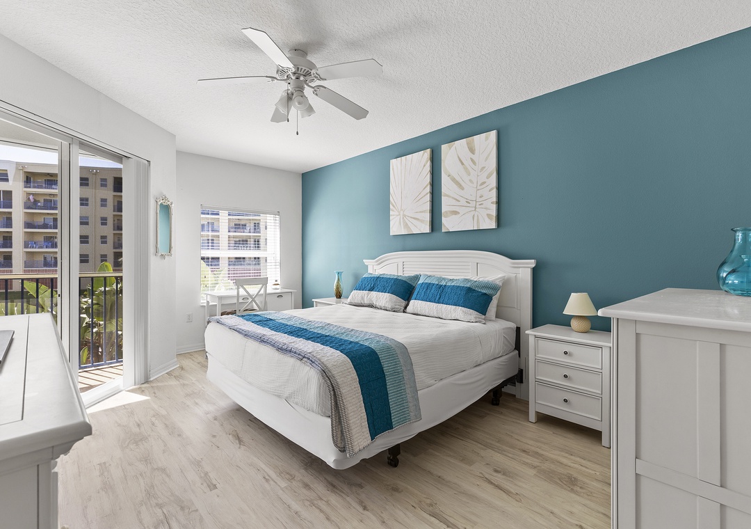 Escape to Oceanwalk 15-206, the perfect home away from home! Step into this exquisite 2 bedroom, 2 bath condo with a fully equipped kitchen. This unit boasts a king bed in the primary bedroom with a workspace perfect for those working remotely. Additionally, this room has private balcony access and an ensuite full bathroom with a stand-up shower and jetted tub. The guest bedroom has a full bed and a bathroom in the hallway. The bathroom has a shower/tub combo. Step out of your condo and make your way to the pool, or sandy beach, or just relax on your spacious balcony with a cocktail or coffee in hand. After a long day out on the beach, relax in the living room with your loved ones and watch a movie on the large flatscreen TV. The fully stocked kitchen provides all the necessities to create the perfect gourmet meal for you and your crew. Join us now to embark on a journey of creating timeless beach memories that will be cherished for a lifetime at Oceanwalk 15-206