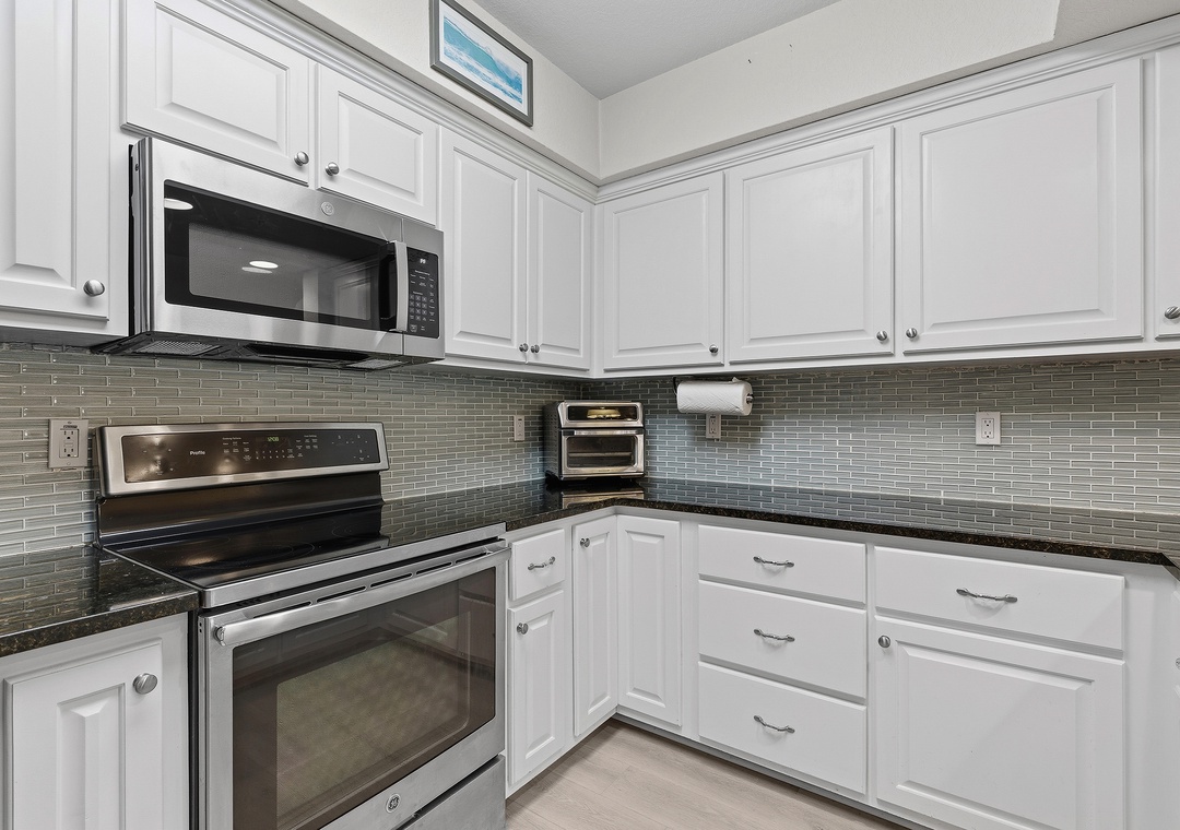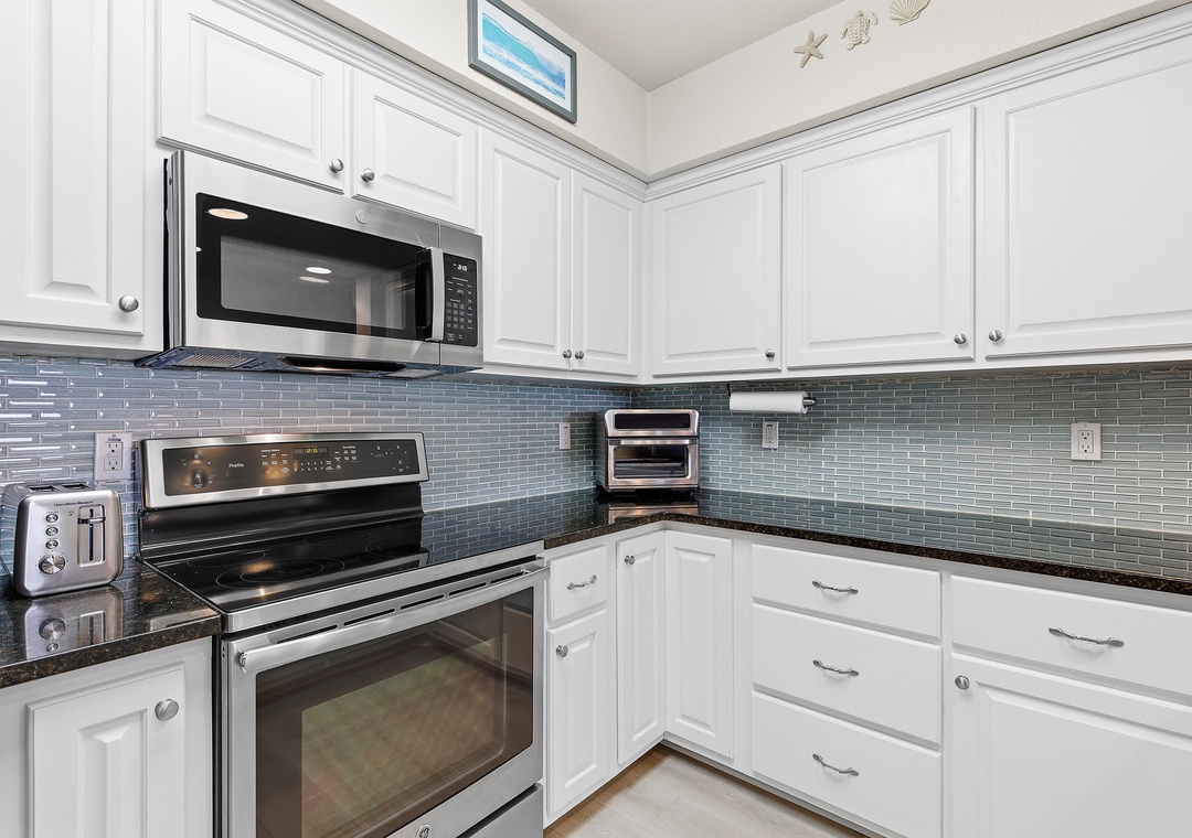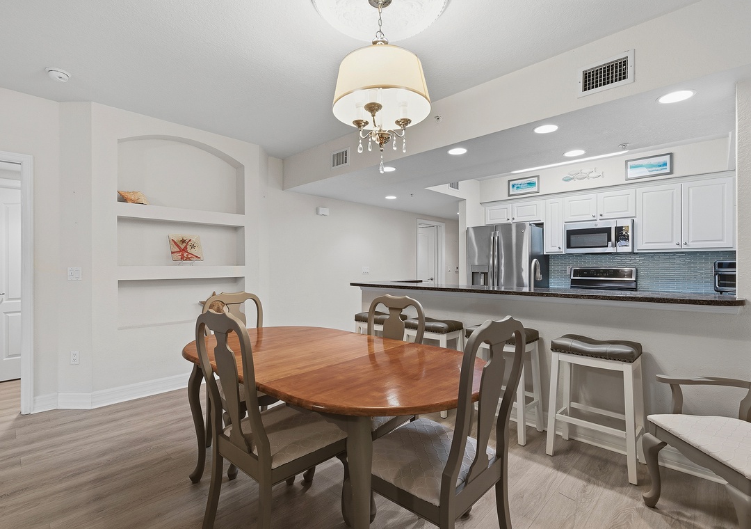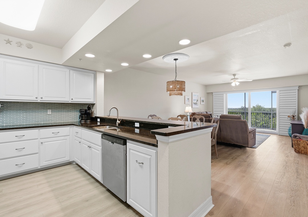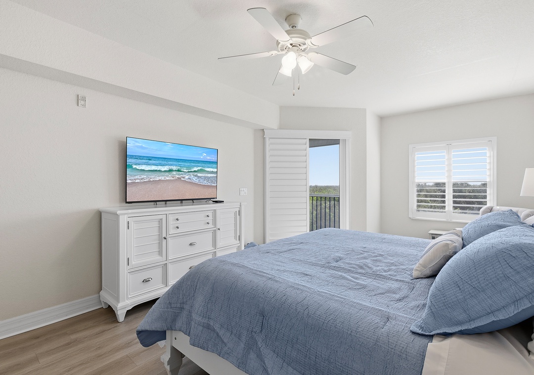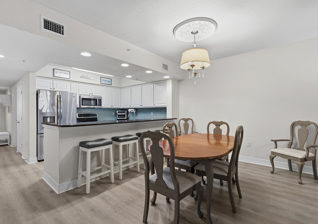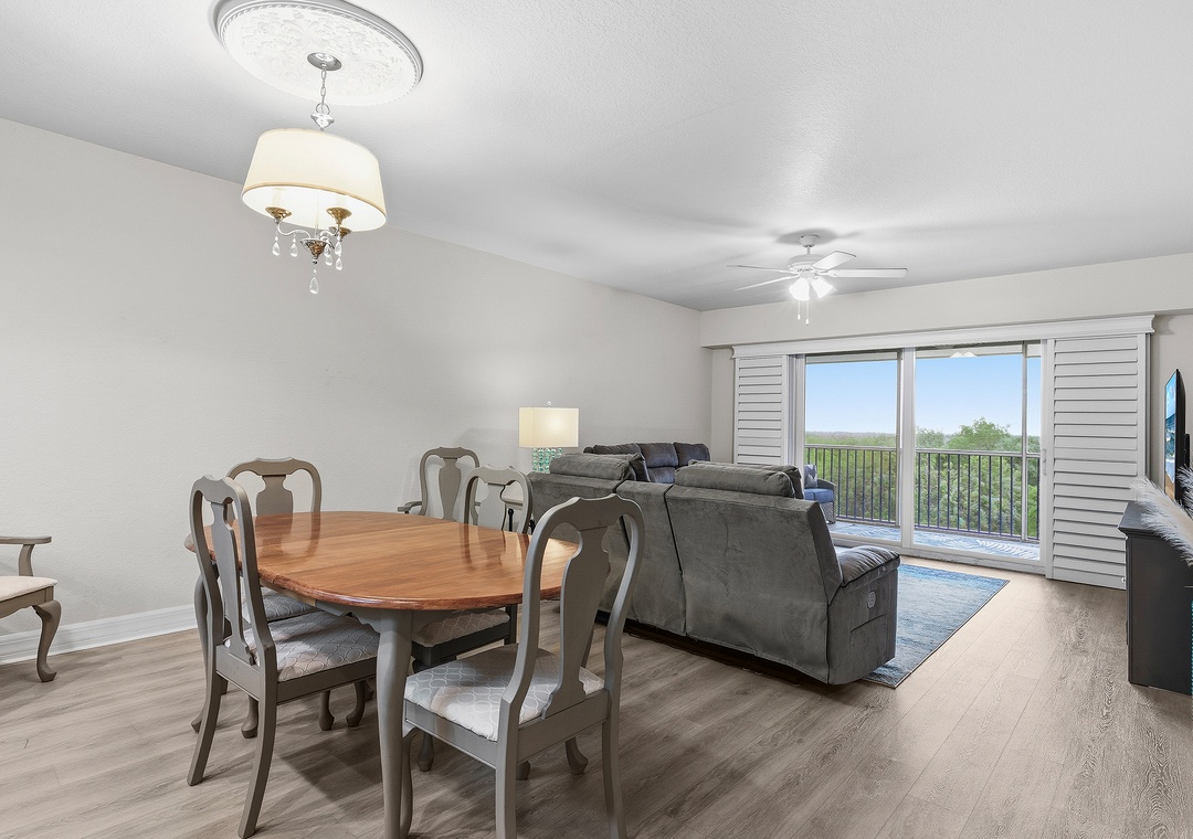 New Smyrna Beach is one of Florida’s best destinations for swimming, surfing, kite surfing, shore fishing, and family fun, but the real magic is coming home to a spacious, relaxing beachside condo like Oceanwalk 17-303. This 3-bedroom, 2-bath retreat blending stylish décor with cozy comfort, offering a beach escape you’ll want to revisit year after year. The modern kitchen features clean white cabinetry, stainless-steel appliances, and granite countertops, providing a beautiful space to cook while soaking in scenic views. Whether you’re enjoying breakfast at the bar, gathering around the dining table, or playing cards on the patio at sunset overlooking the estuary, there’s plenty of room for quality time. After a full day at the beach, settle into plush reclining couches and enjoy a movie night on the 55" Smart TV.