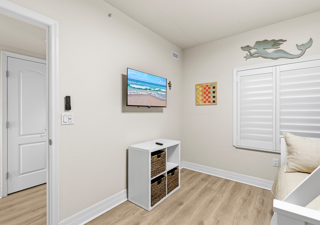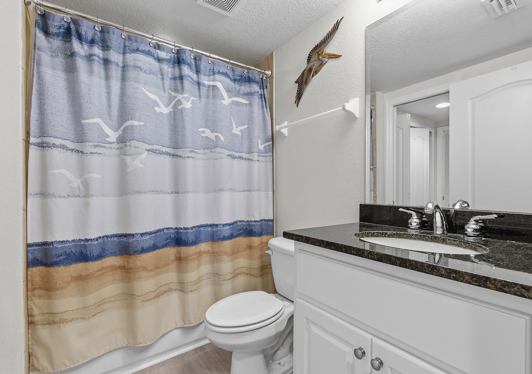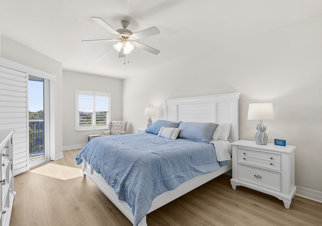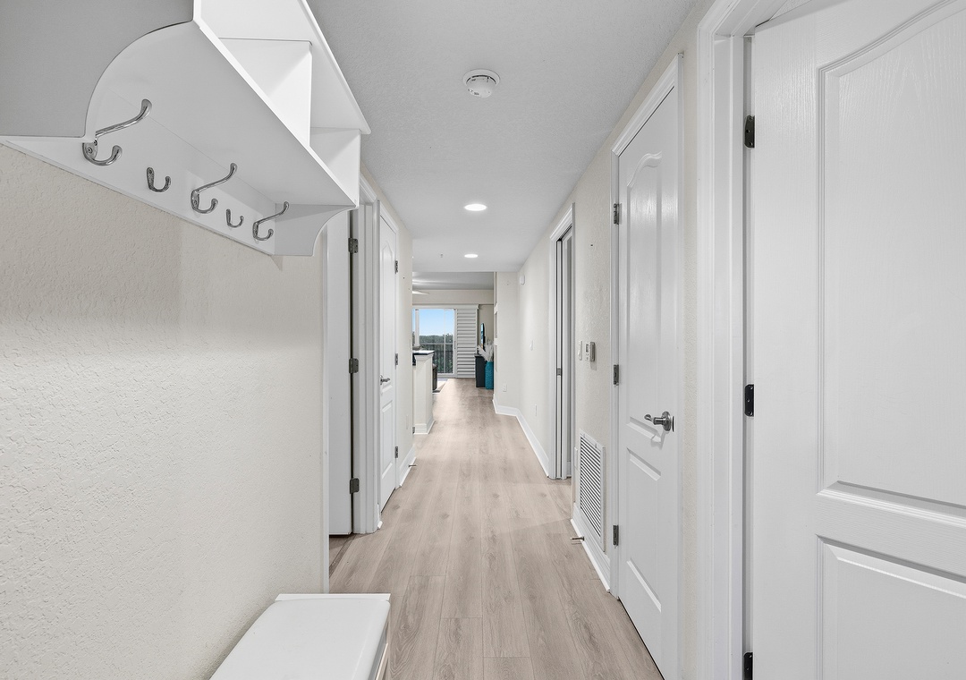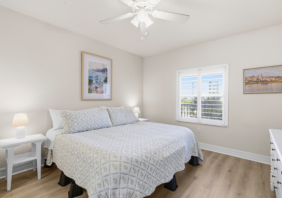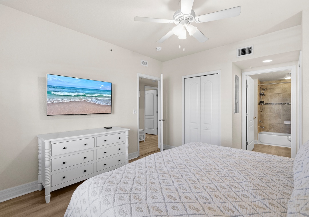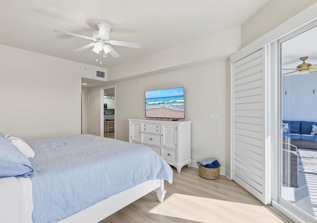 Step out onto the screened-in balcony to take in peaceful estuary and Intracoastal views, or unwind in the serene primary suite with its king bed, private balcony, and coastal décor. The primary bath adds a touch of luxury with a walk-in shower and jetted tub. The second bedroom offers ocean views and a comfortable queen bed, while the third features twin bunk beds perfect for kids. Additional conveniences such as Smart TVs, an in-unit washer and dryer, high-speed internet, and premium cable, ensure a smooth, stress-free stay. Just a two-minute walk to the beach, Oceanwalk 17-303 is the ideal home base for an energized and unforgettable beach vacation.