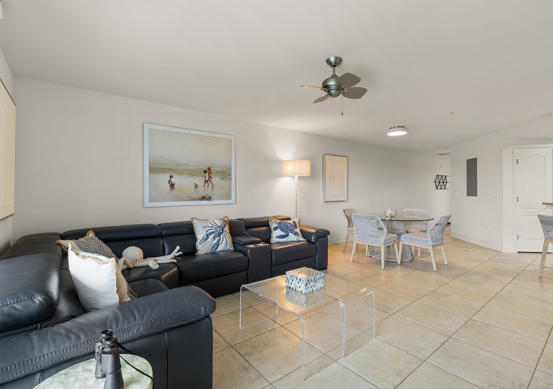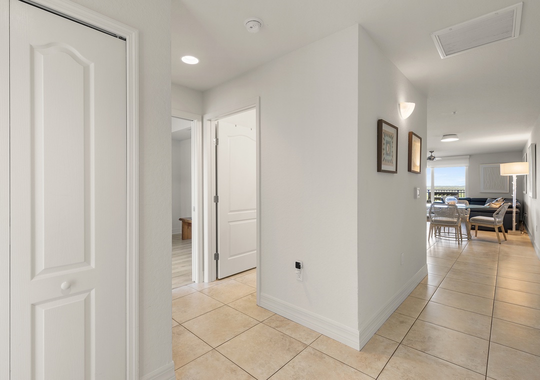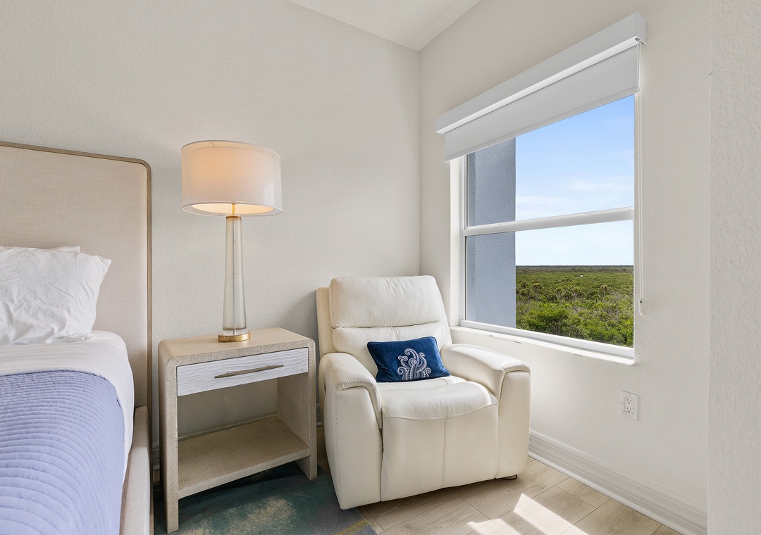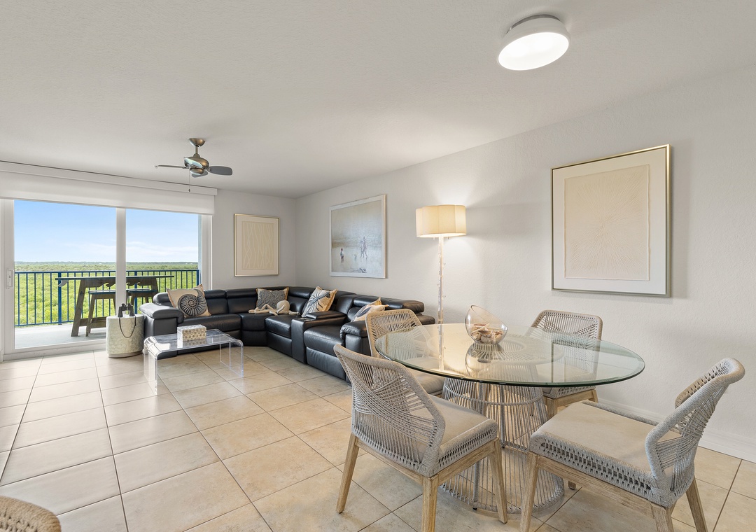Come stay at Oceanwalk 17-502, a modern, high-end, hotel-chic condo that blends sleek furnishings, stylish décor, and cozy comfort for the perfect beach escape. This 2-bedroom, 2-bath retreat offers abundant natural light, cool-toned tile, and an open layout designed for family gatherings, from breakfast at the bar or dinner at the dining table to sunset card games on the patio overlooking the estuary. The kitchen features beechwood cabinetry, stainless steel appliances, and granite countertops, while the living area invites relaxation with a reclining couch and streaming-ready smart TV. The primary suite is a true sanctuary with a king bed, private balcony, Smart TV, and spa-like bathroom with a walk-in shower, double vanities, and jetted tub, while the guest bedroom—tucked on the opposite side of the condo—offers double bunk beds for four and ocean views. Step outside to take in breathtaking estuary scenery, enjoy amenities like Smart TVs in both rooms, beach chairs, a cooler, keyless entry, a washer/dryer, high-speed internet, and premium cable, and take advantage of the short two-minute walk across the safety crosswalk to the beach.
