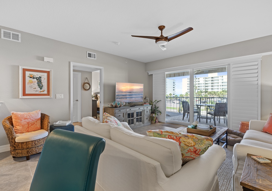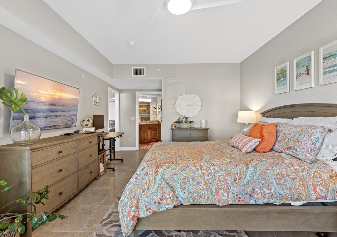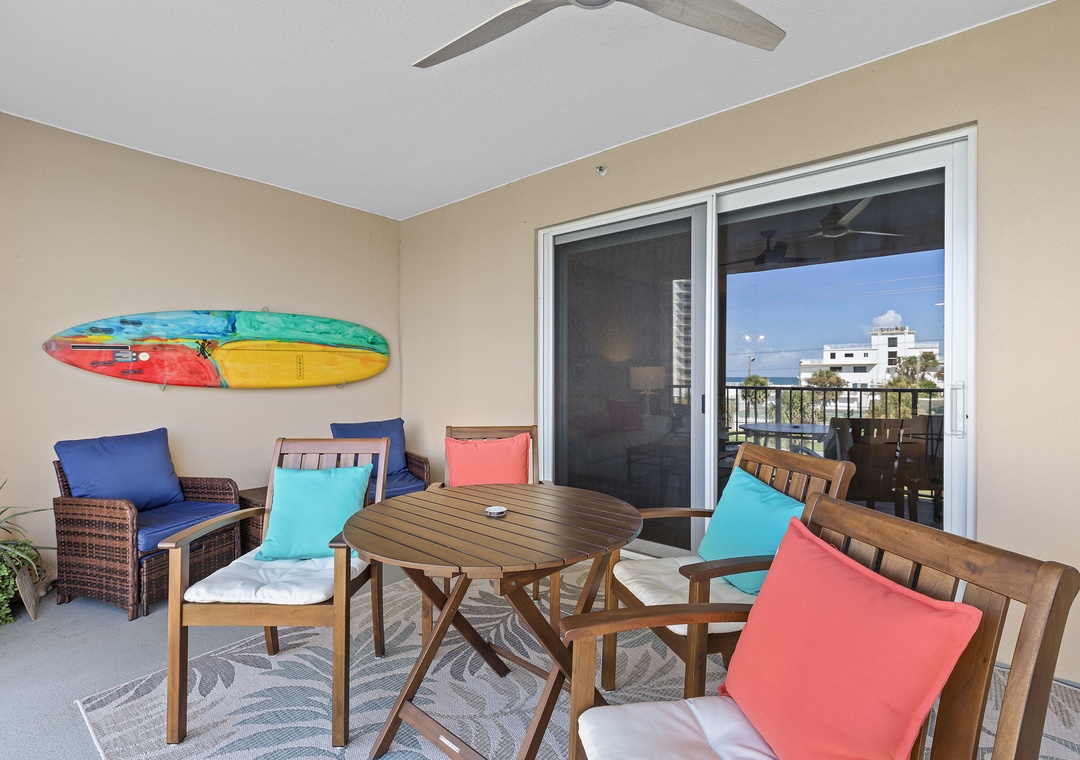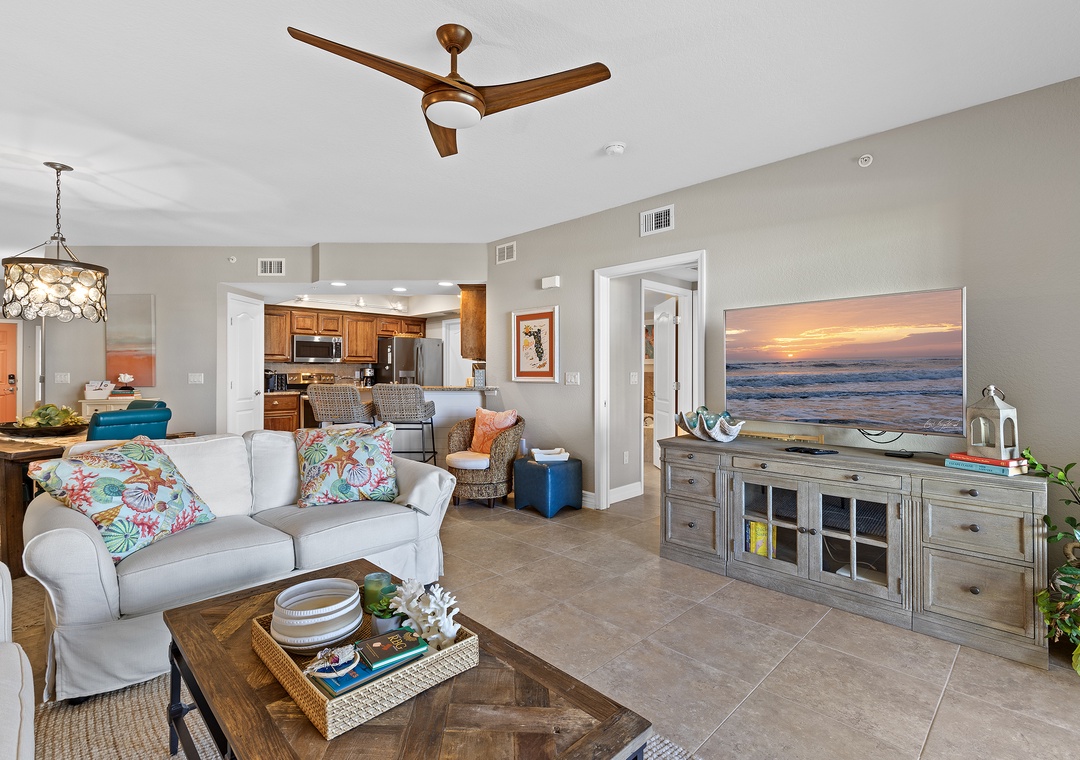 Escape to Oceanwalk 20-302, the perfect home away from home! Step into this exquisite 2 bedroom, 2 bath condo with a fully equipped kitchen. This unit boasts a queen bed in the primary bedroom with walk-in closet. Additionally, it has a full bathroom with a beautiful stand-up shower and double sinks. The guest bedroom has a full bed. The bathroom has a shower/tub combo. Step out of your condo and make your way to the pool, or sandy beach, or just relax on your spacious balcony with a cocktail or coffee in hand. After a long day out on the beach, relax in the living room with your loved ones and watch a movie on the large flatscreen TV. The fully stocked kitchen provides all the necessities to create the perfect gourmet meal for you and your crew. Join us now to embark on a journey of creating timeless beach memories that will be cherished for a lifetime at Oceanwalk 20-302