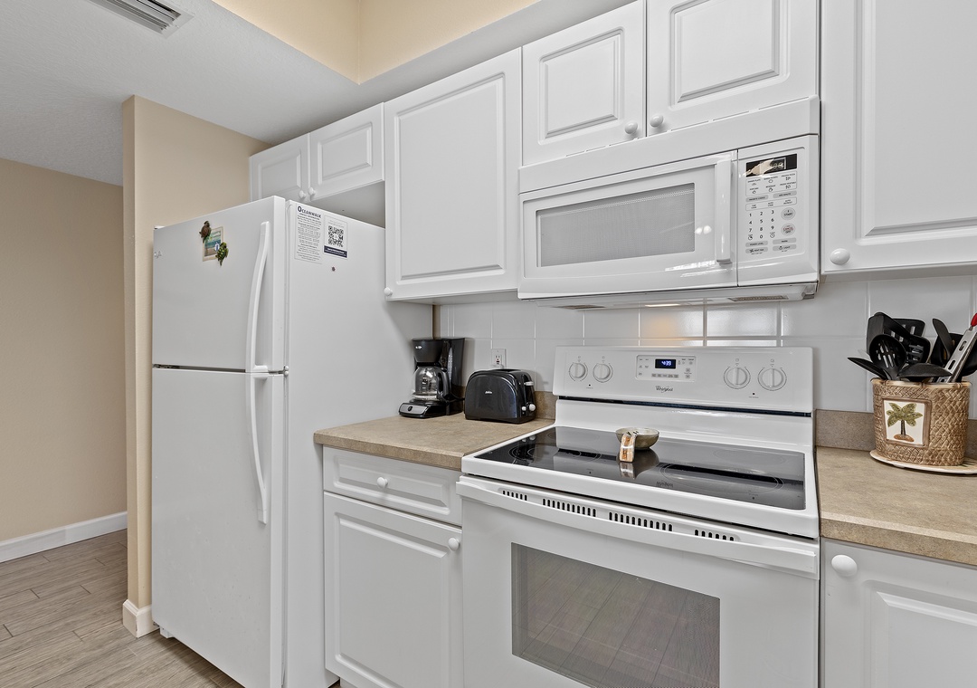 This condo is equipped with everything you need, including linens, towels, beach chairs, free Wi-Fi, cable TV, and an in-unit washer/dryer, ensuring a stress-free vacation.