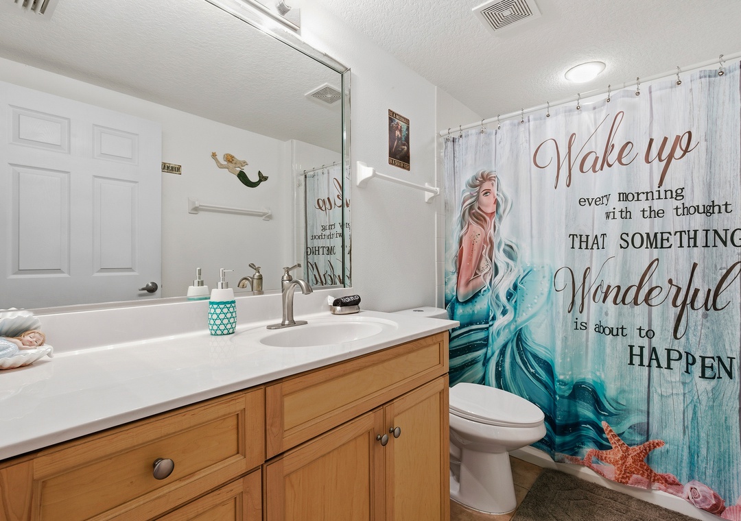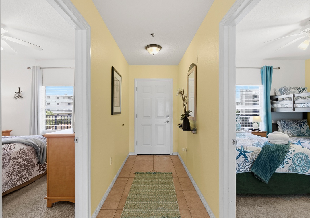 Each bedroom features plush bedding and ample closet space, ensuring a comfortable stay for all guests. The master suite boasts an en-suite bathroom with a spa-like shower, providing a perfect sanctuary after a day of exploring. The additional two bedrooms are equally well-appointed, with one featuring a queen bed and the other a twin bunk bed, making it ideal for families or groups of friends.
