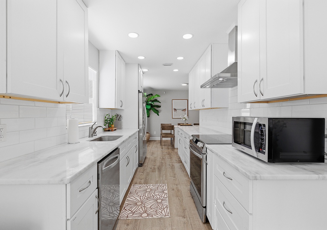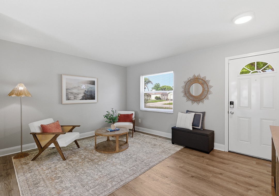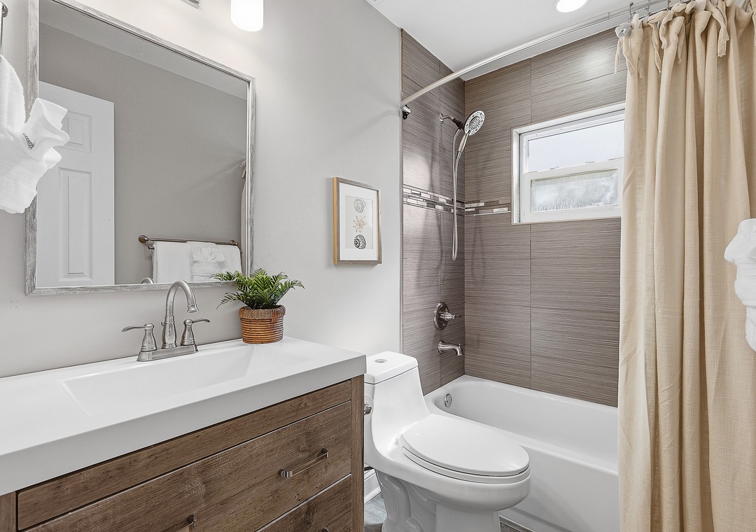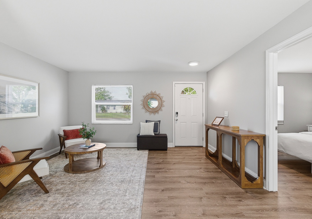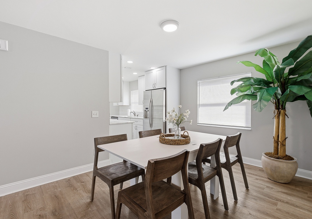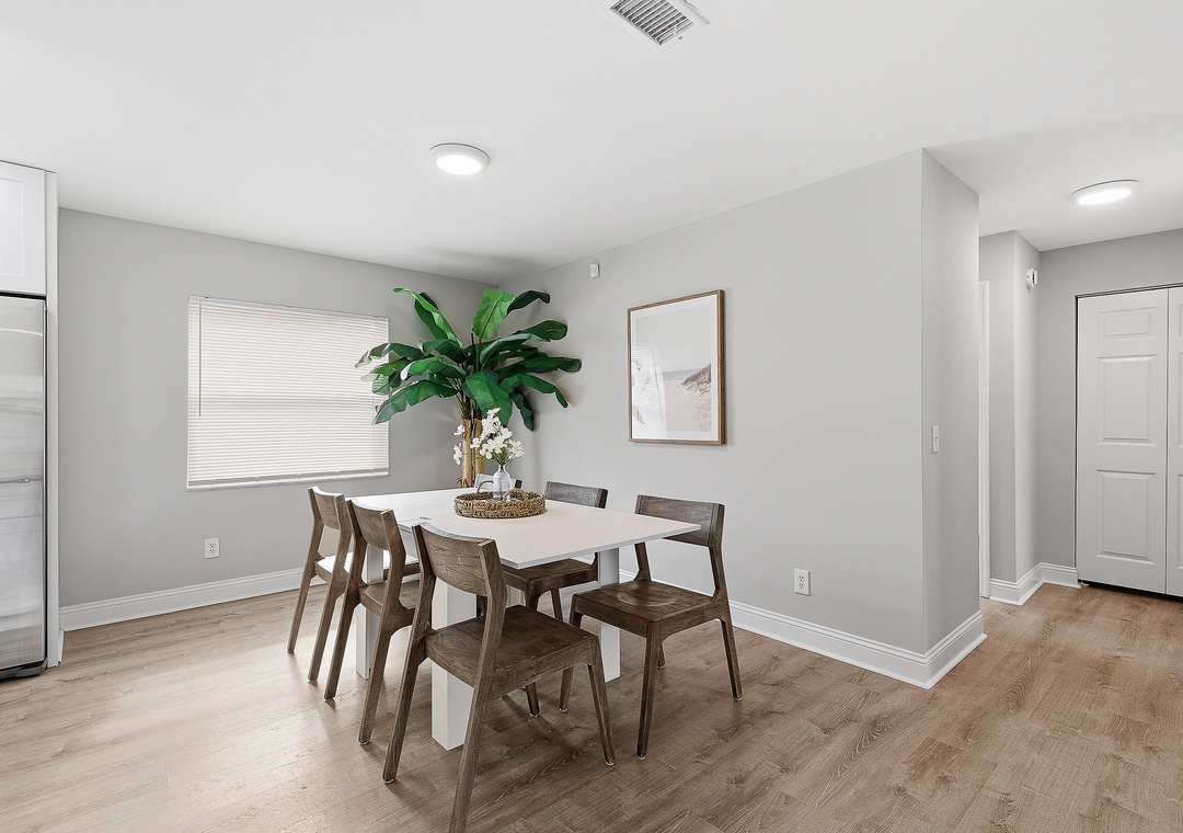 Welcome to your perfect Port Orange getaway—a completely renovated, comfortable, family-focused, single-level home just 4 miles from Daytona Beach. This spacious 3-bedroom, 2-bathroom home comfortably accommodates up to 8 guests and features a split floorplan for added privacy. The primary bedroom offers a king bed and a private ensuite with a walk-in shower, while the guest bedrooms include one with a queen bed and another with two twin beds. A sleeper sofa in the living room provides additional sleeping space. Designed to bring people together, the home has a single TV in the living room to encourage conversation and quality time. The galley kitchen, equipped with stainless steel appliances, flows seamlessly into both the living room and dining area, where a table seats six with additional seating nearby for extra guests.