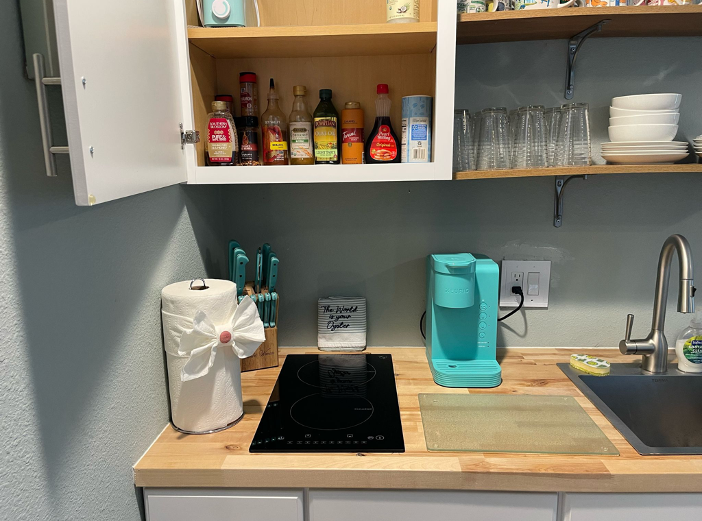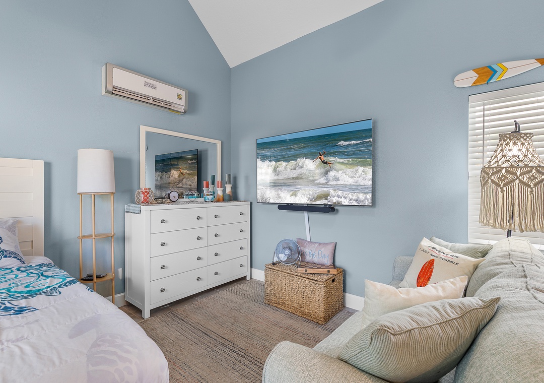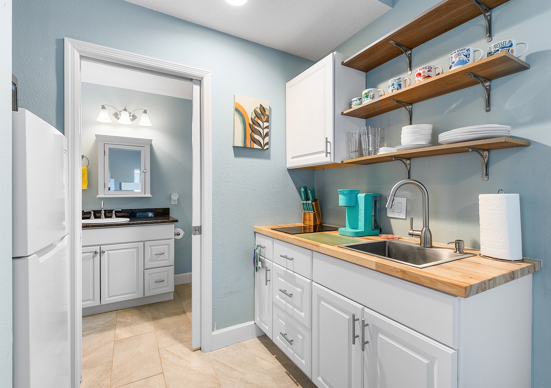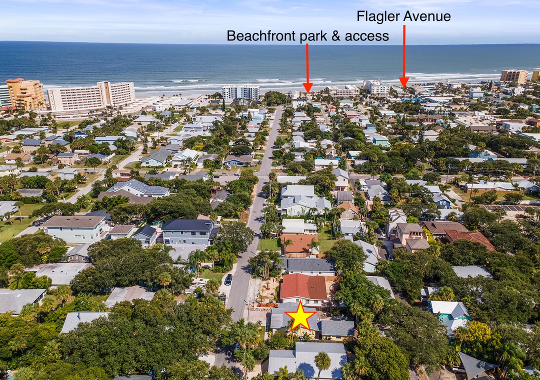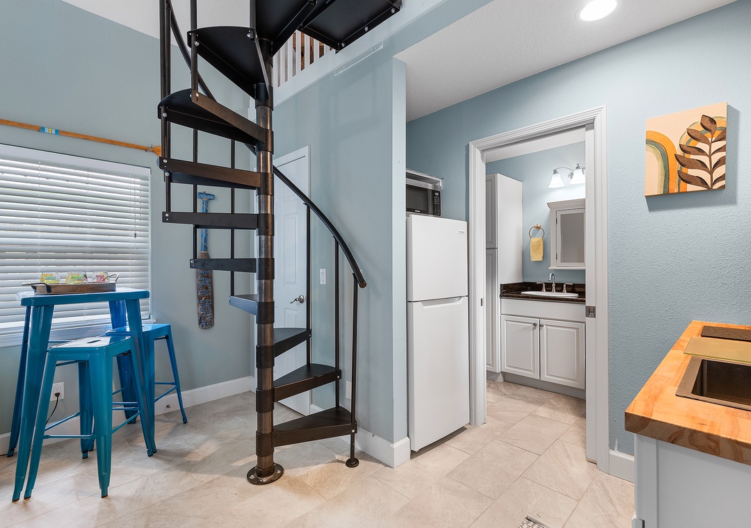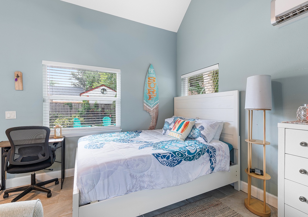 As part of Casa del Limone, tucked behind the main house, the guest studio rented separately is Paradiso dei Limoni, a charming private retreat in the heart of New Smyrna Beach, perfect for monthly rentals. Whether you're a retiree, snowbird, teacher on summer break, or simply someone lucky enough to take an extended vacation, this dreamy little retreat invites you to slow down and stay awhile. Located in a safe, laid-back neighborhood, just a short walk to the beach and the nostalgic charm of Flagler Avenue, you’ll find yourself wandering with a snow cone in hand, soaking up the sweet feeling of Old Florida. Inside, the studio is cozy and comfortable — ideal for cooking slow meals, reading a good book, or curling up for a peaceful afternoon nap. This cozy unit features one bedroom, a loft with an additional bed, a kitchenette, and a comfortable sitting area — ideal for morning coffee, quiet reading, or evening unwinding. Thoughtfully designed, the guest house shares access to the beautifully landscaped courtyard-style backyard, complete with string lights, a firepit, hammock, loungers, grill, dining area, outdoor shower completed with bicycles for you to enjoy being fit or being a kid again — the perfect setup for barefoot evenings under the stars. The guest house also shares access to the full-size washer/dryer, and has parking for 1 vehicle in the driveway. Pet-friendly policy (1 small dog under 20 lbs with fee), every detail is designed to make you feel right at home.