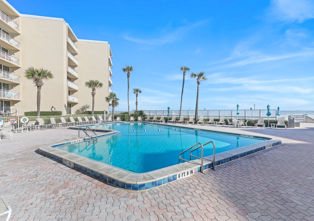 Great property. The Pelican Condominium Complex is well cared for. Pool deck and pool are clean. Grills were easy to use. One of the two pools was closed for the week we were there. The beach is steps away from the condo. The condo itself is clean and spacious. The kitchen is well supplied with cookware and small appliances and very large for a condo. It has been nicely updated inside. We really enjoyed our stay here. We had a great view of a SpaceX rocket launch out of Cape Canaveral from the front door balcony. Only downsides were the keypad was being difficult. Usually took several tries to open the door. Remember to use insect repellent if you are outdoors in the evening or morning. The pool has some strict rules that were being enforced on the weekend.- Reviewed On: 8/4/2023