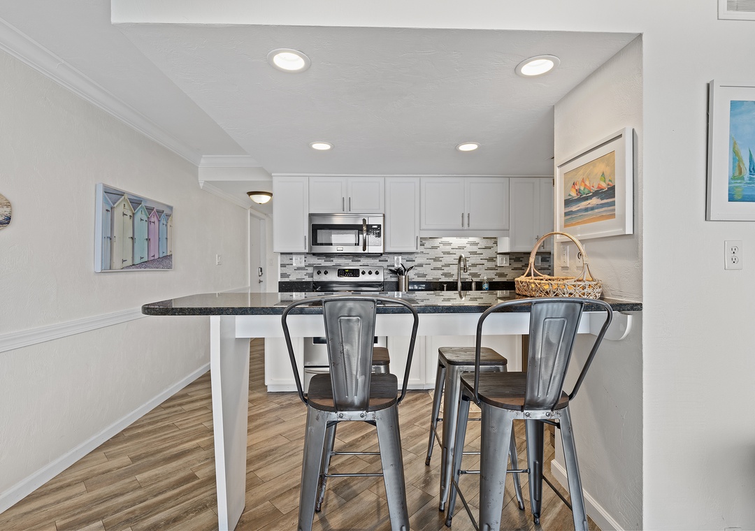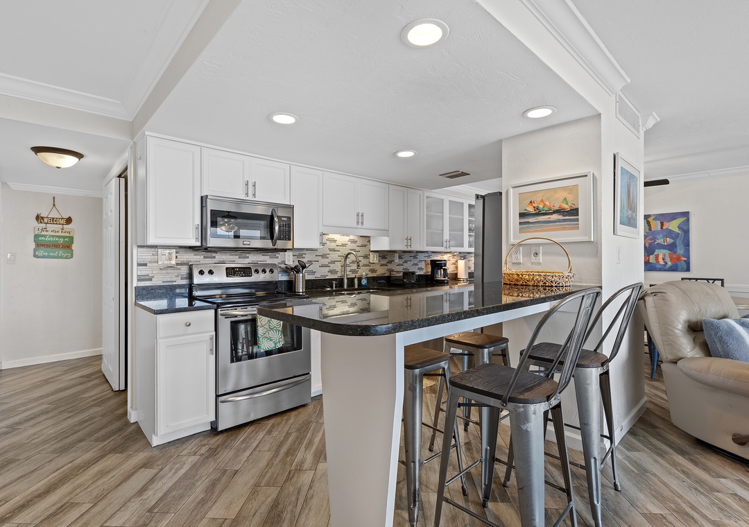 Thank you for your wonderful review! We are delighted that you enjoyed the lovely condo and decor. Please come back soon and be sure to take advantage of our return guest discount.