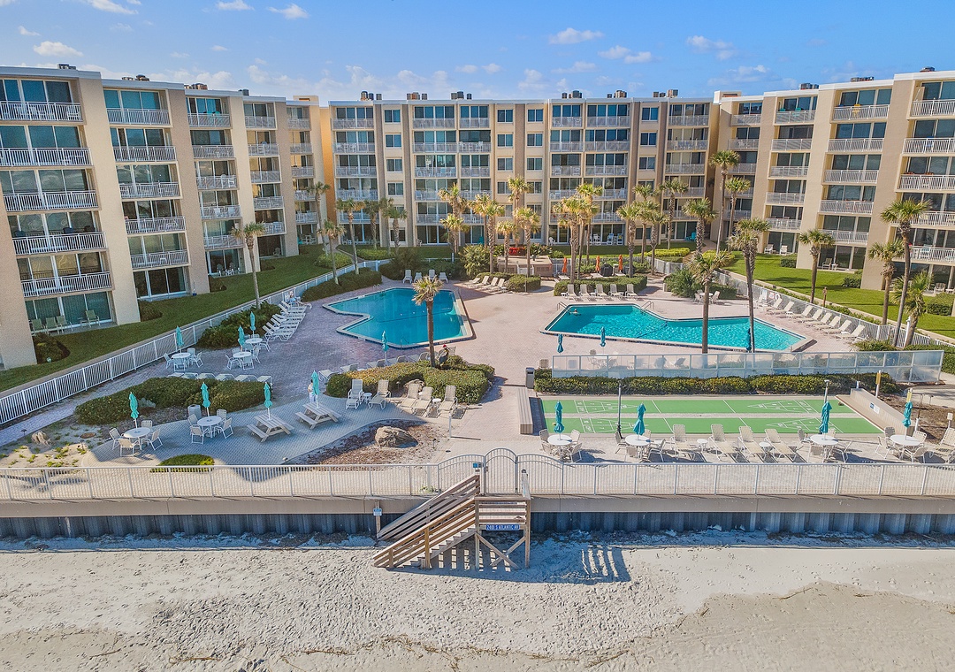 The Pelican is one of New Smynra Beach's most beloved oceanfront condominiums. The Pelican was built in 1974 and has 144 individual units that have provided guests and residents with the best New Smyrna Beach stays. Aside from an envied oceanfront location on the driving beach, this complex offers on-site fun such as two swimming pools, two shuffleboard courts, BBQ grills, and a deck with picnic table seating. The Pelican is less than a 5-minute drive from dining and shopping on the popular Flagler Avenue and only 3 minutes away from the local grocery store. Experience an oceanfront NSB vacation and stay in The Pelican!